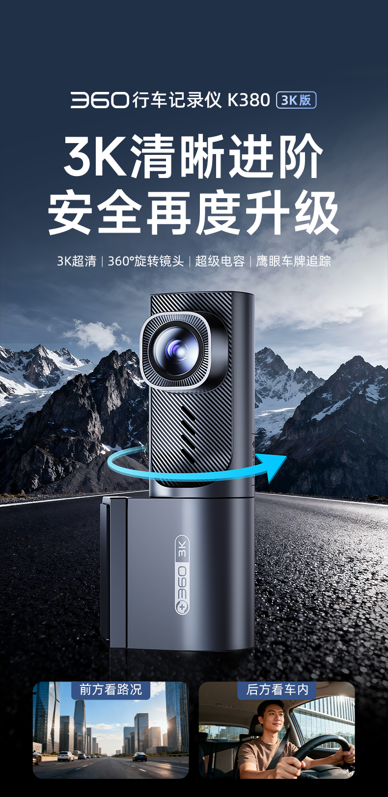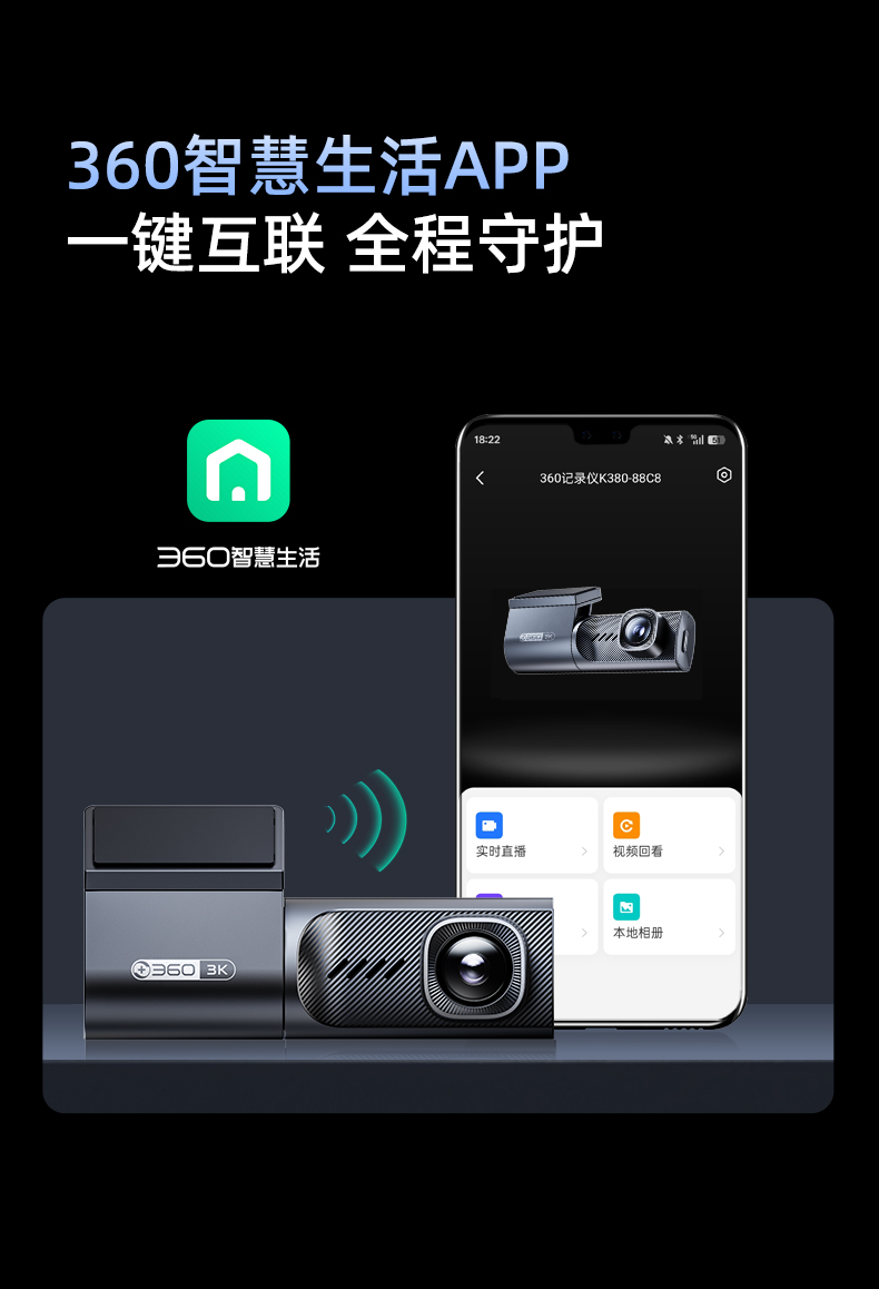 【超值】360行车记录仪高清 G900 4K超高清拍摄 一体式设计 双频高速wifi