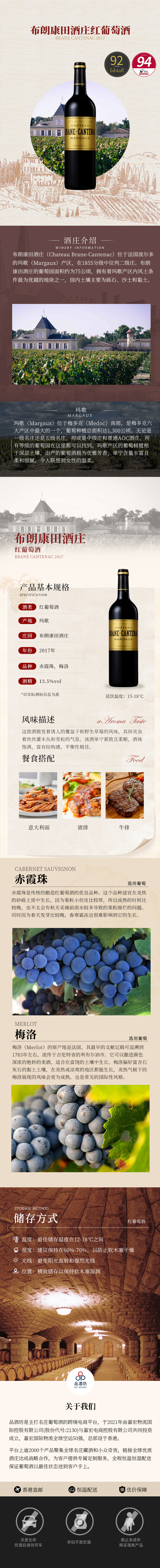 2017 Brane Cantenac 布朗康田酒庄红葡萄酒