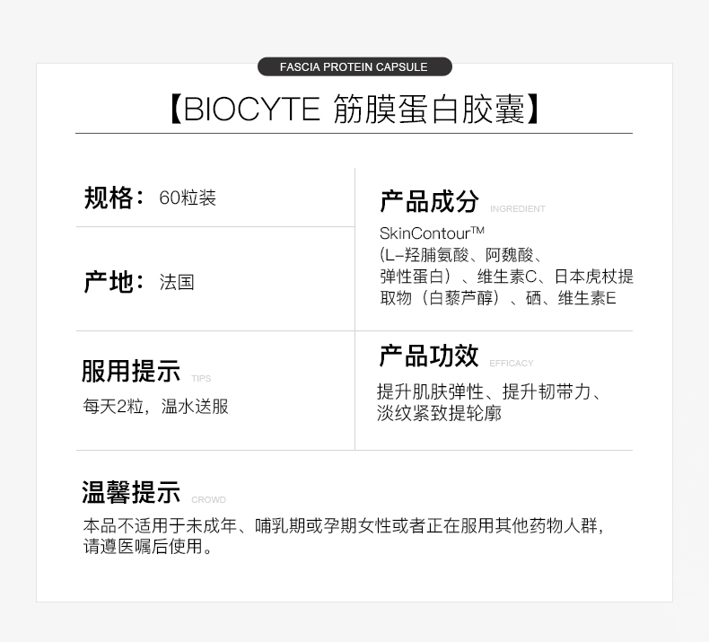 【营养师专属G】法国碧维斯Biocyte筋膜提拉紧致蛋白胶囊3.0 SMAS筋膜抗衰