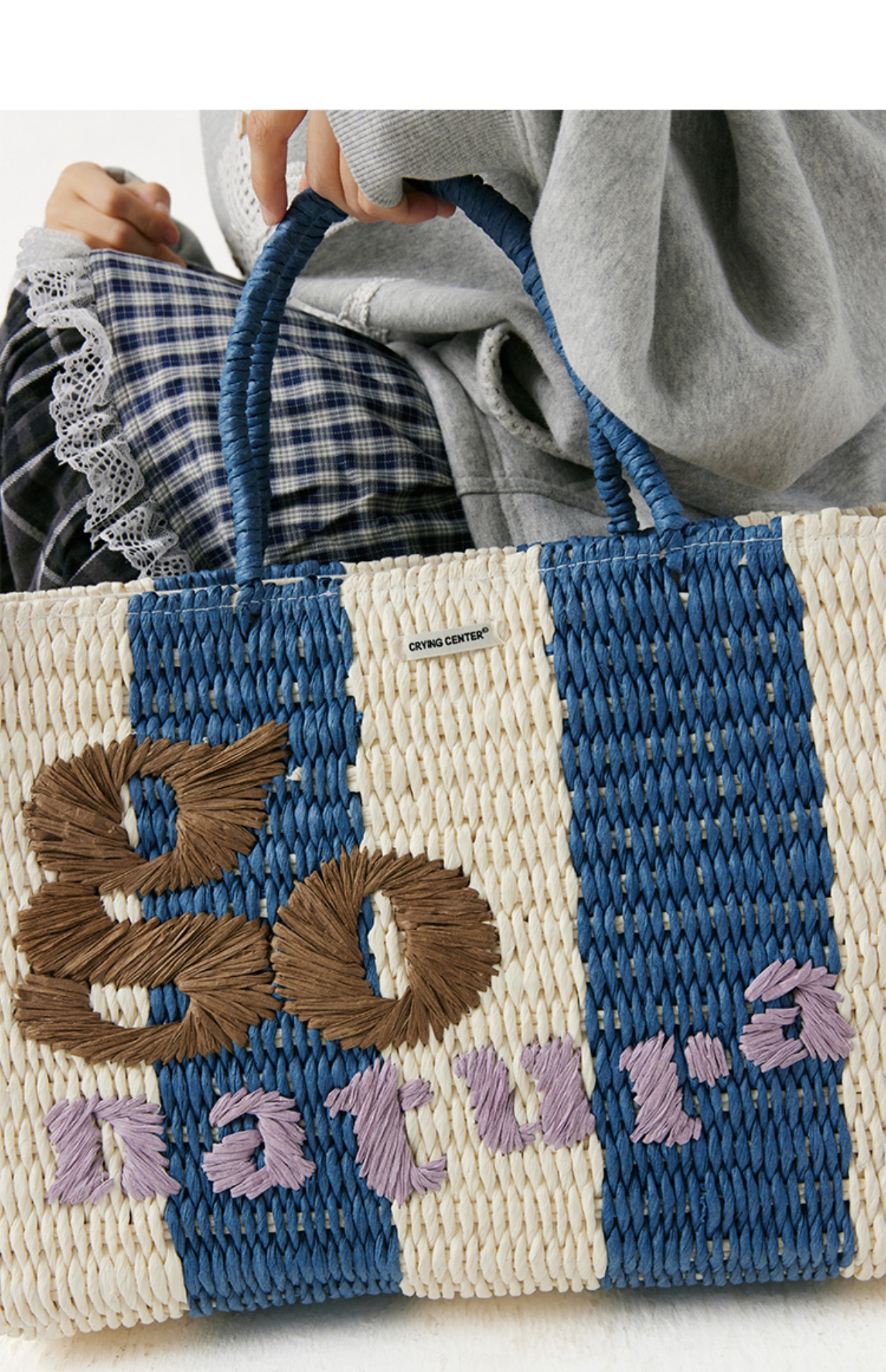CryingCenter 条纹野餐度假草编包 哭喊中心