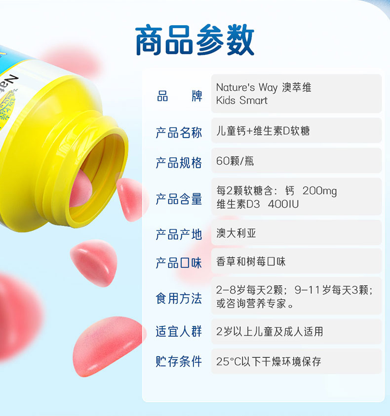 【保税仓】NATURESWAY儿童维儿童钙+维生素D钙软糖 60粒/瓶