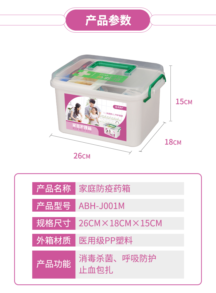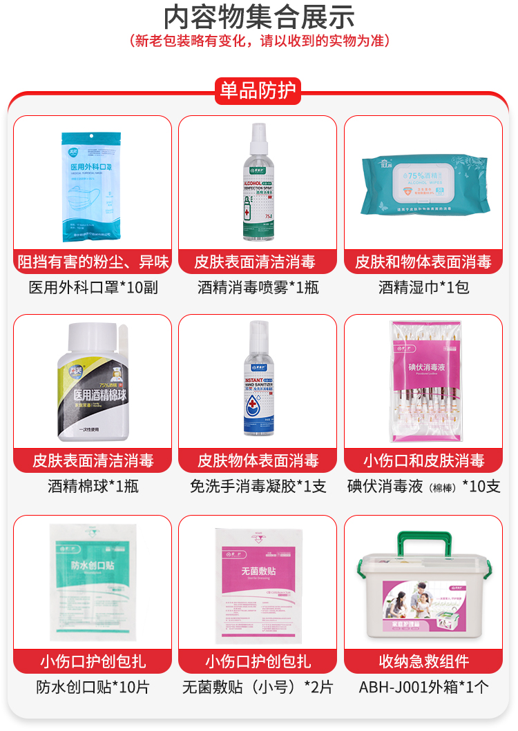 爱备护 急救包 家庭防疫药箱 家庭消毒防护套装 ABH-J001M
