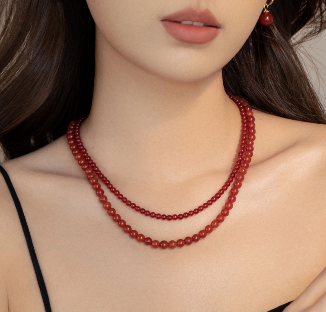 优选丨沐银时代红玛瑙8mm手链 沐银时代4+6mm叠戴红玛瑙项链