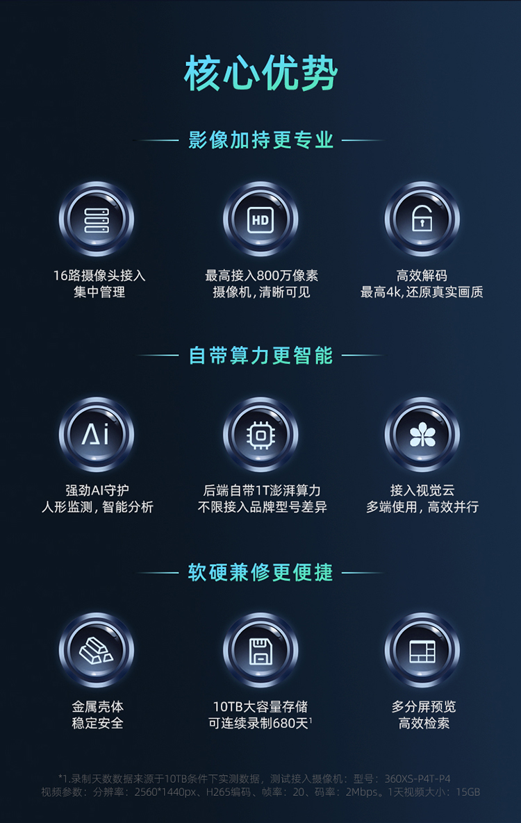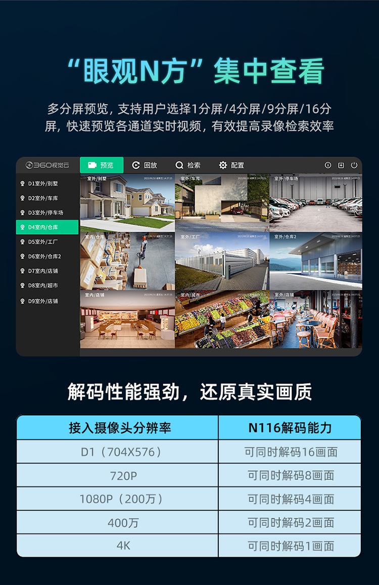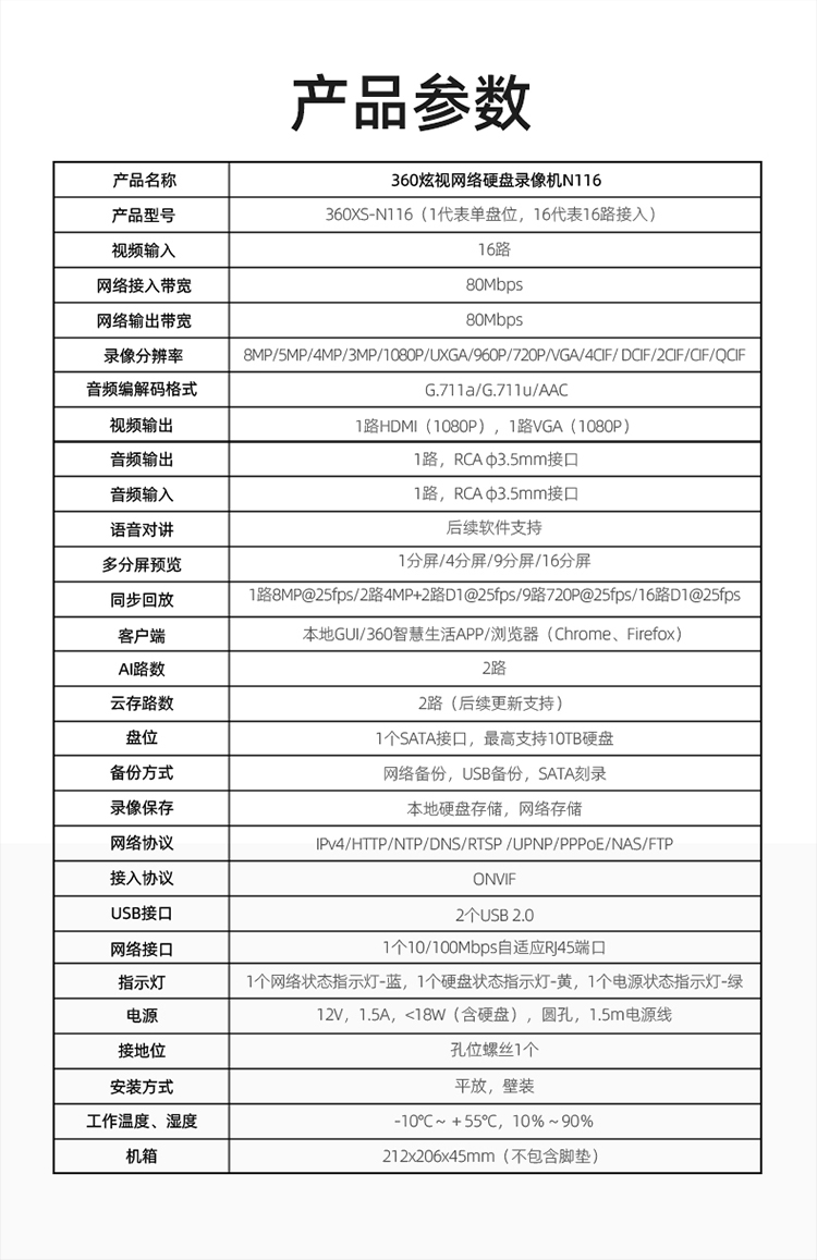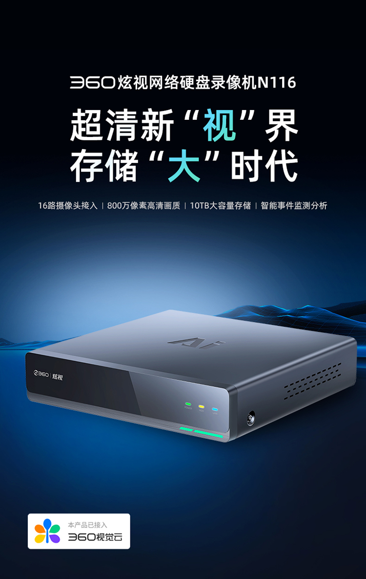 【专属】360炫视网络硬盘录像机N116高清NVR刻录机