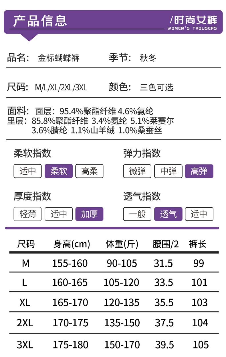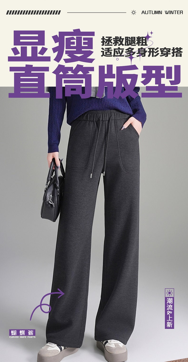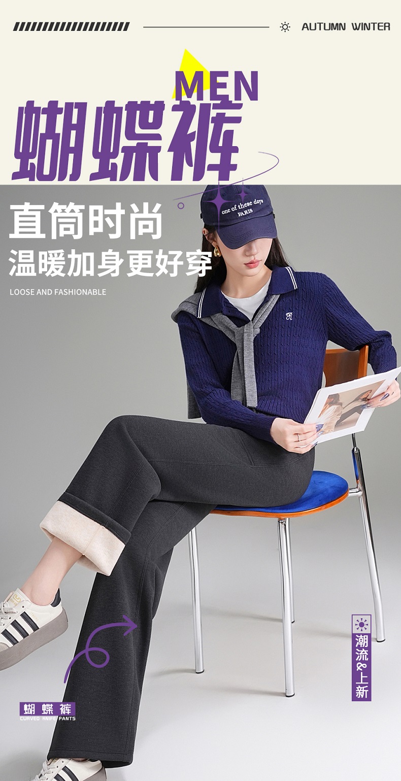 优选丨【特价】【山羊绒+桑蚕丝+天丝,王炸面料配比】【蝴蝶裤型,显瘦天花板】秋冬新款女金标蝴蝶裤羊绒蚕丝直筒裤保暖加绒加厚松紧腰