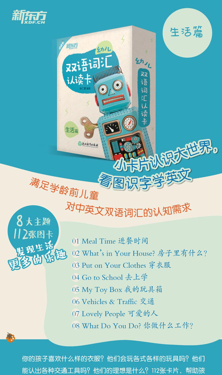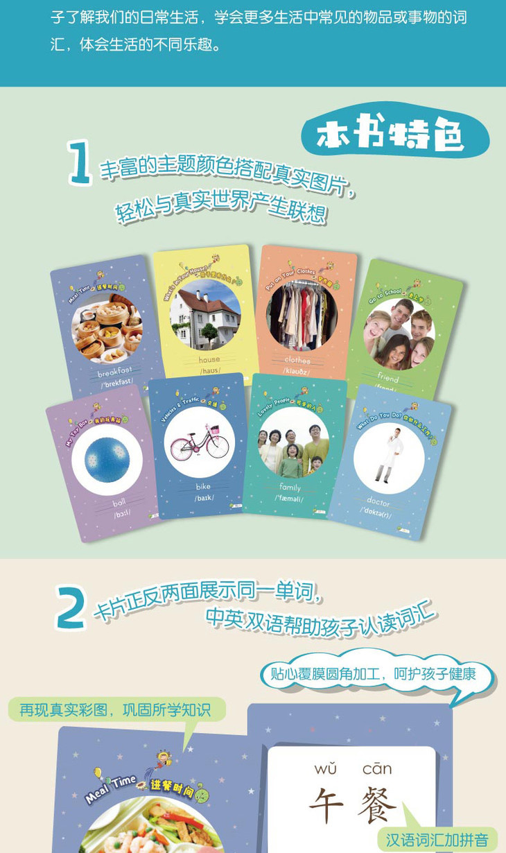 中英双语:中英双语词汇正反搭配,一个词汇两种语言。