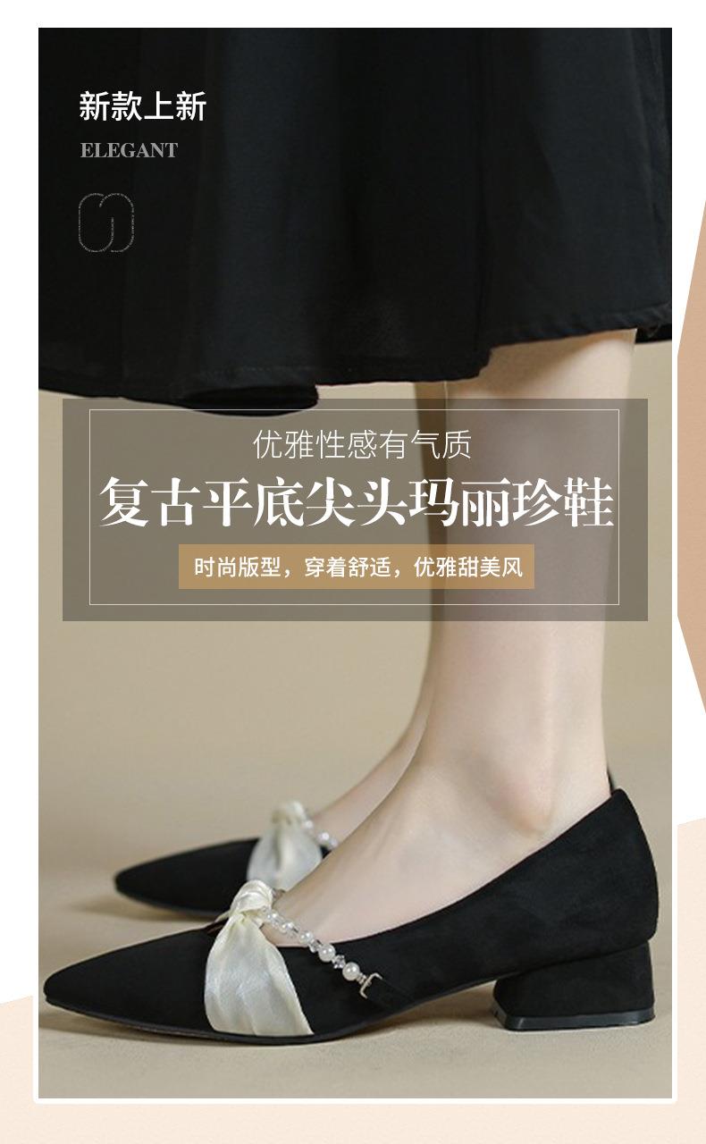 【嫡系典雅玛丽珍】2026春夏女士复古珍珠蝴蝶结平底玛丽珍鞋单鞋女新款尖头舒适透气百搭单鞋女款
