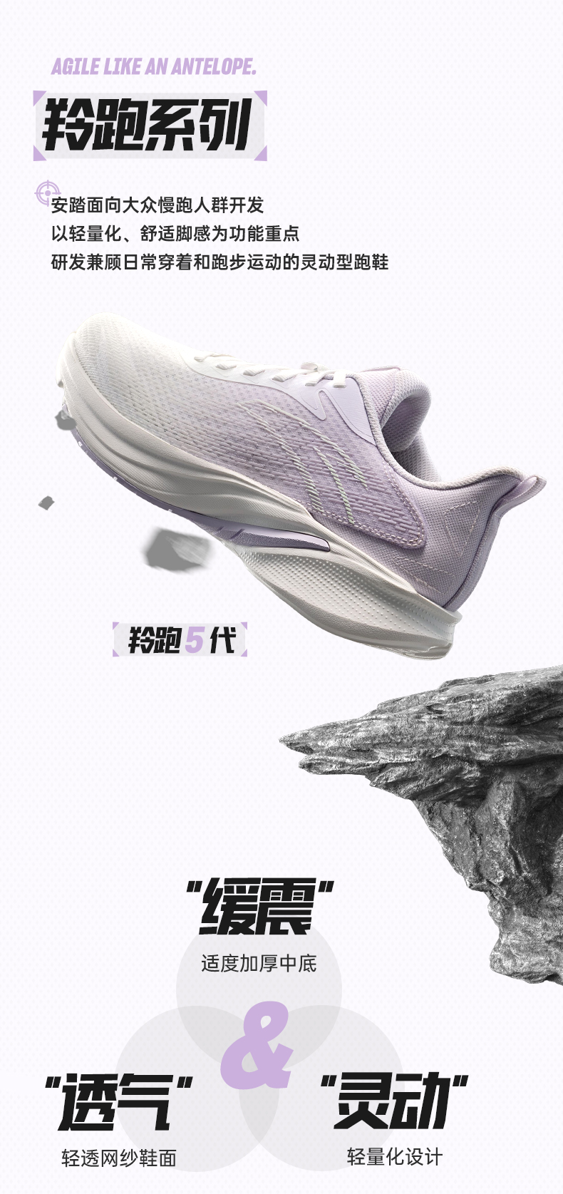 安踏羚跑5丨缓震轻便跑步鞋女秋季透气舒适耐磨运动鞋子122535585