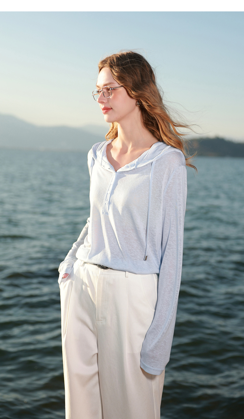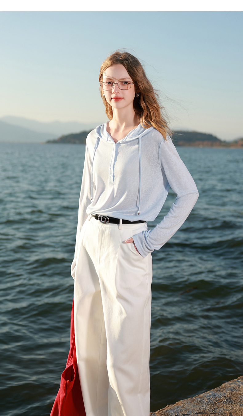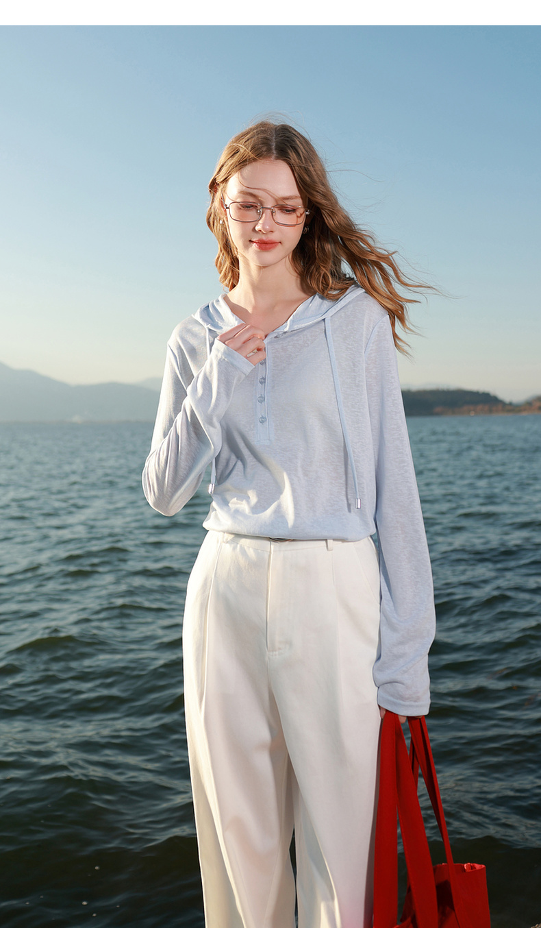 【莱赛尔】三彩2026春季新款慵懒休闲连帽T恤套头罩衫宽松长袖M