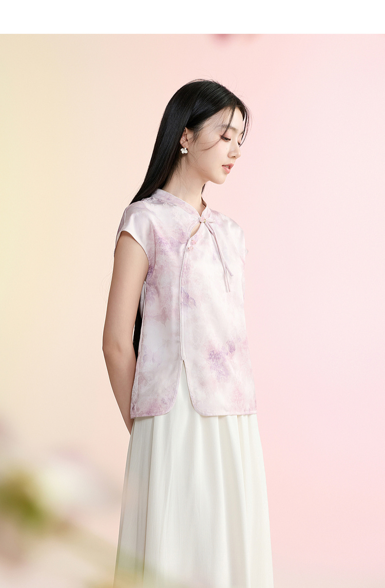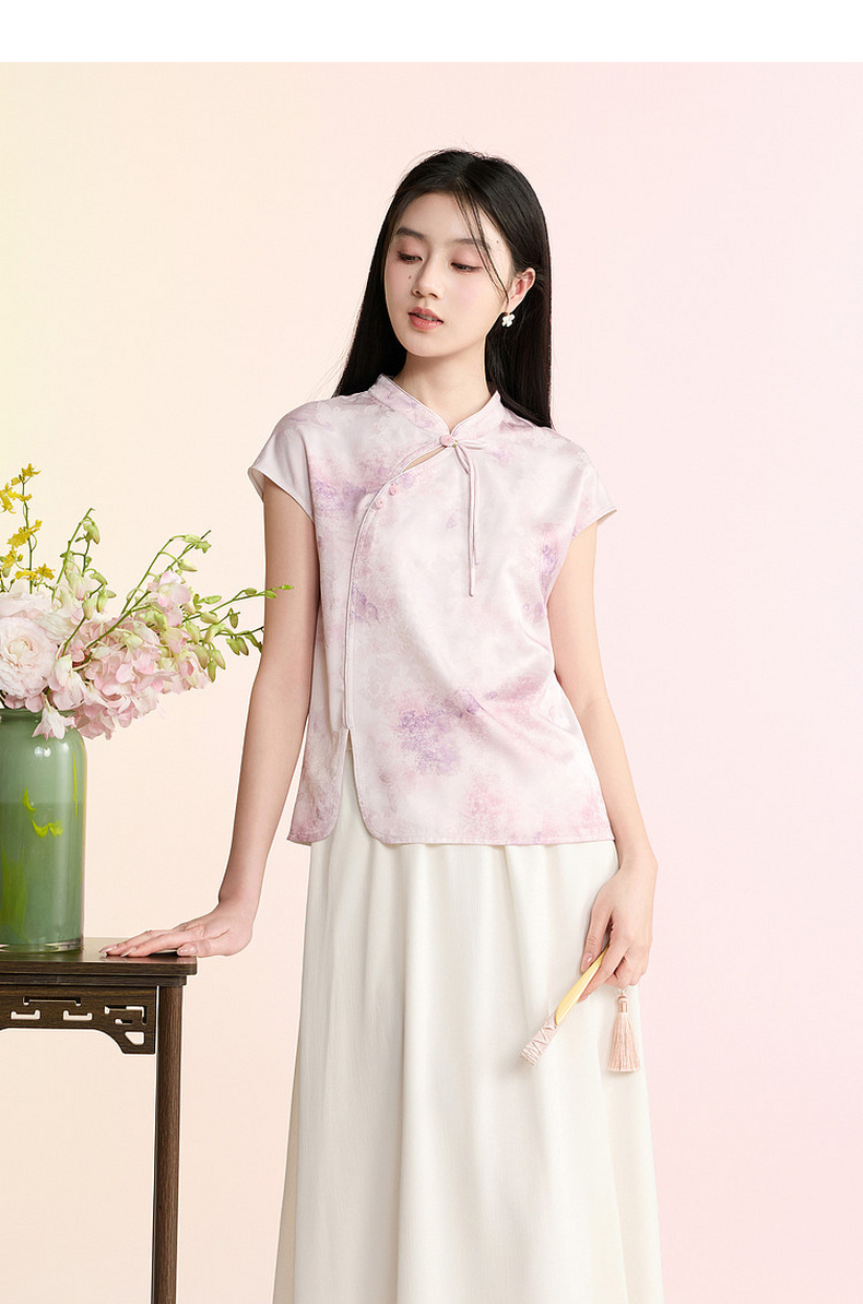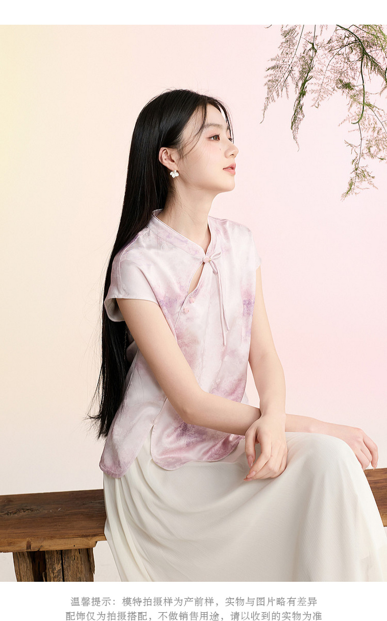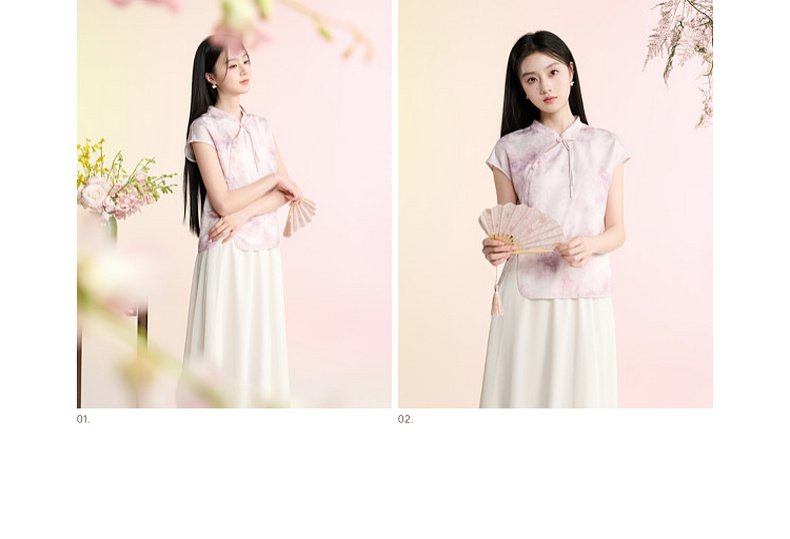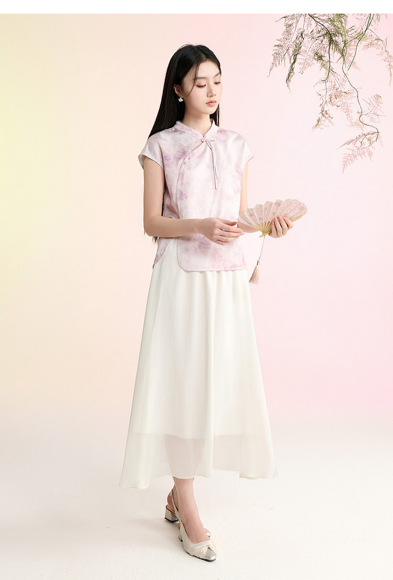 三彩【时夏有风】2026夏季新款新中式上衣雪纺长裙半身裙两件套C