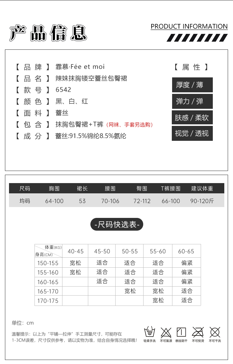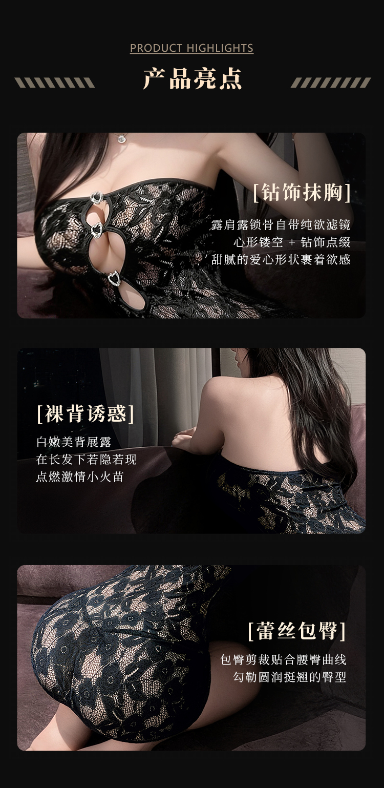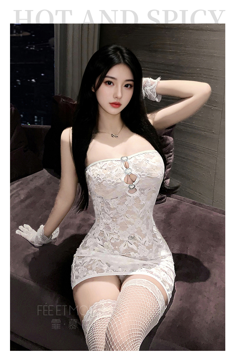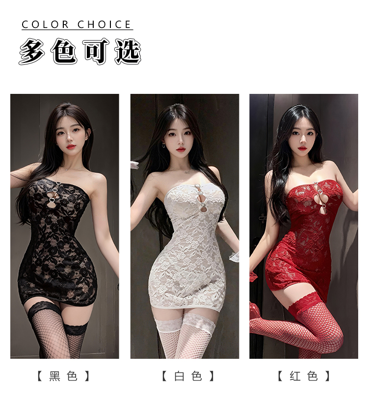 【情趣内衣】谜姬×霏慕 辣妹抹胸镂空蕾丝包臀裙6542