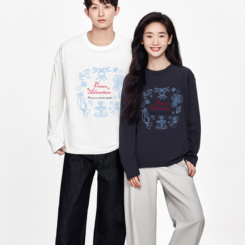 「棉的美学」春秋慵懒休闲打底衫T恤女设计感印花宽松日常长袖上衣