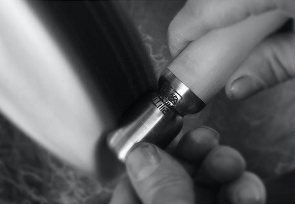 印笼的下端为便携印盒,旋开后可盛放印泥。凹陷处,印笼上刻有“西泠印社”四字,以老字号品牌影响力赋能产品价值。