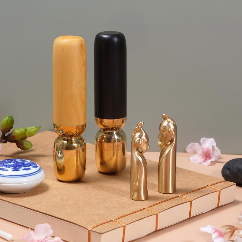 印章配有人工打造的专属印笼,造型从经典印笼中提炼而来,黄铜材质复古简约。