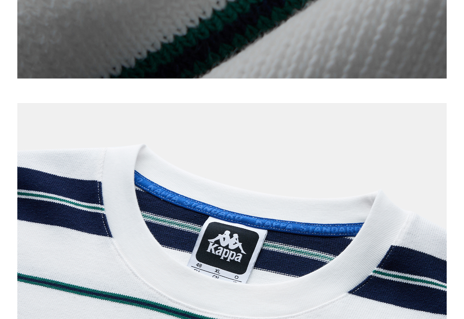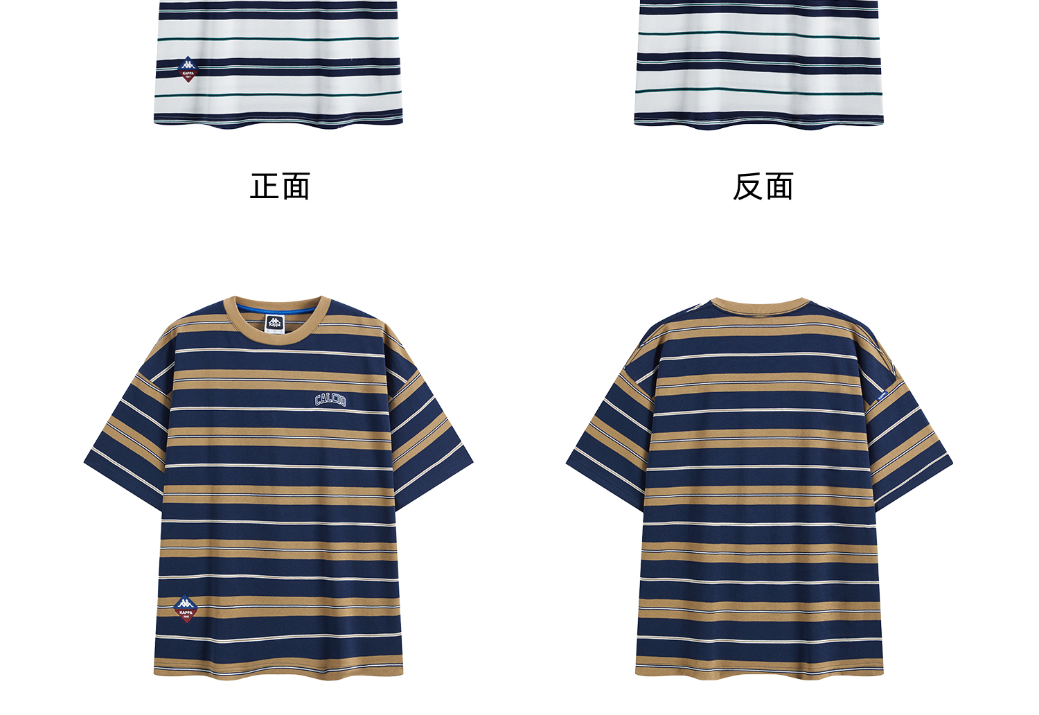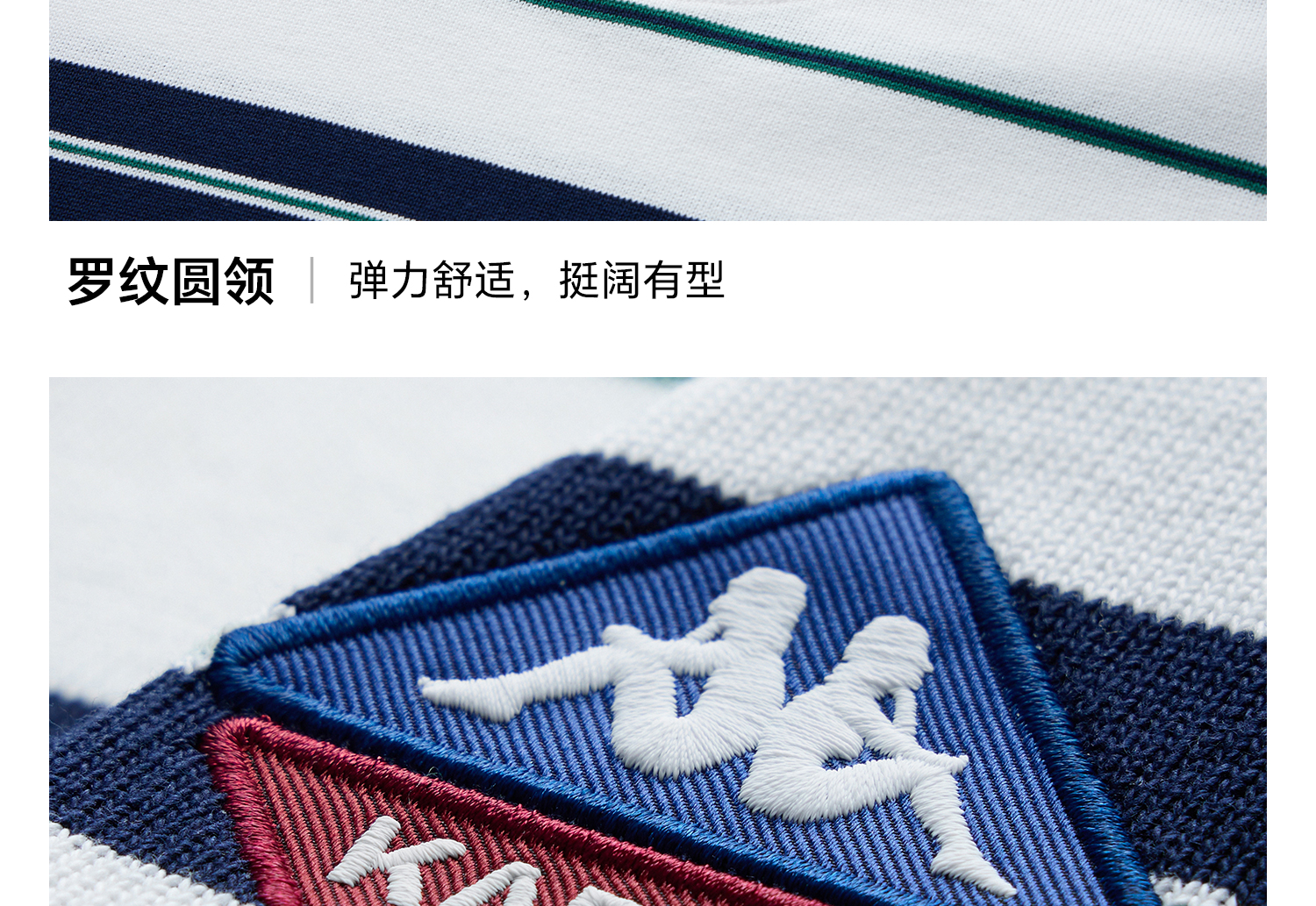 Kappa卡帕背靠背运动短袖男2025新款夏季条纹圆领刺绣半袖t恤男款KPCICTD16