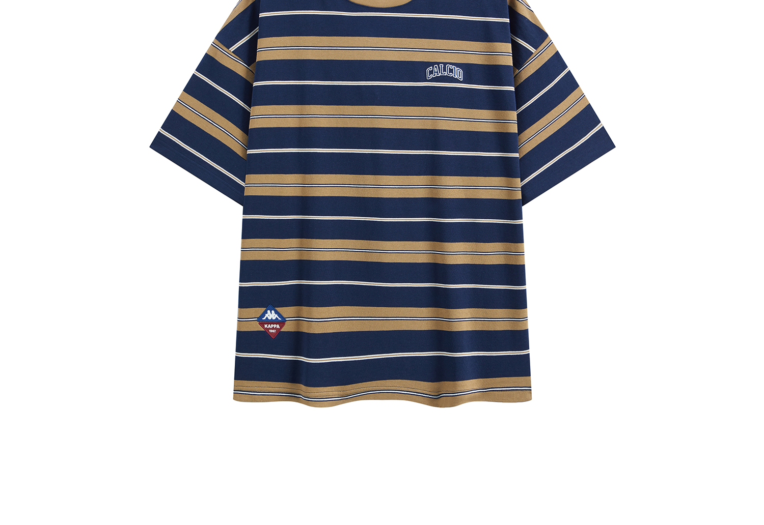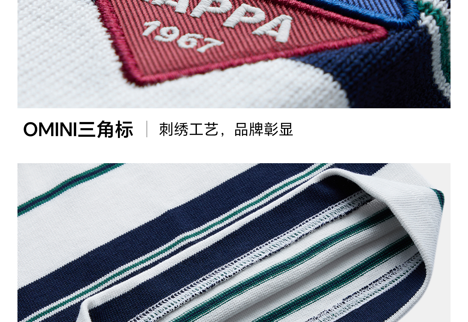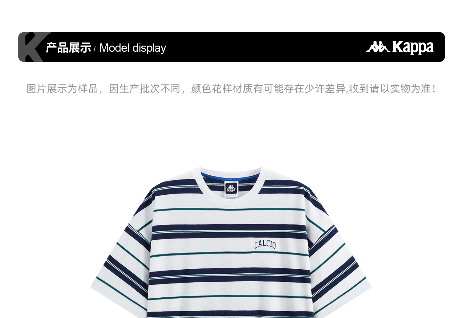 Kappa卡帕背靠背运动短袖男2025新款夏季条纹圆领刺绣半袖t恤男款KPCICTD16