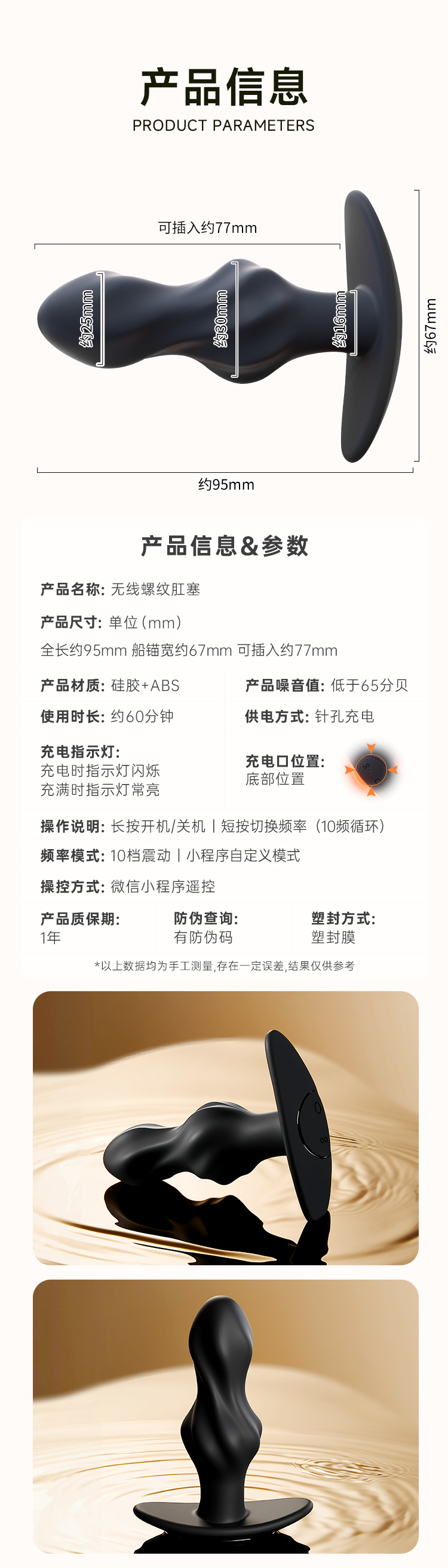【谜姬】 无线肛塞螺纹款 另类玩具sm后庭拉珠助爱肛塞情趣女用品神器电动肛塞遥控肛塞
