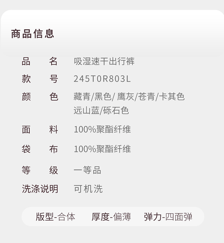 【出行一号】二代升级东丽吸湿速干抗皱透气休闲裤245T0R803L【T】