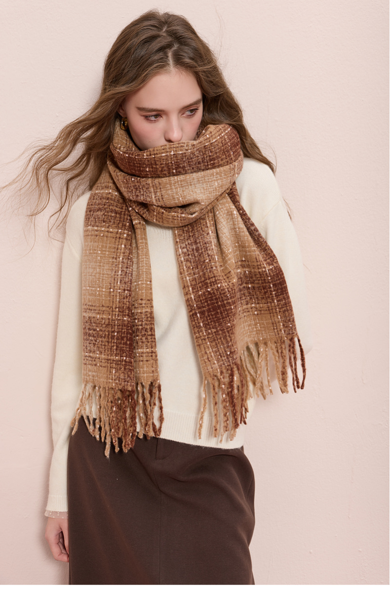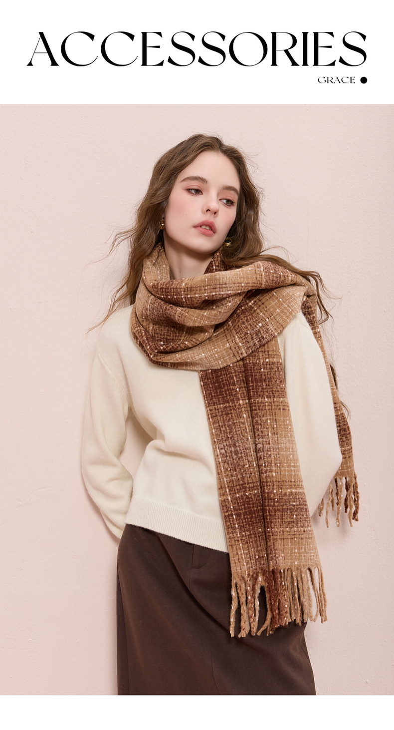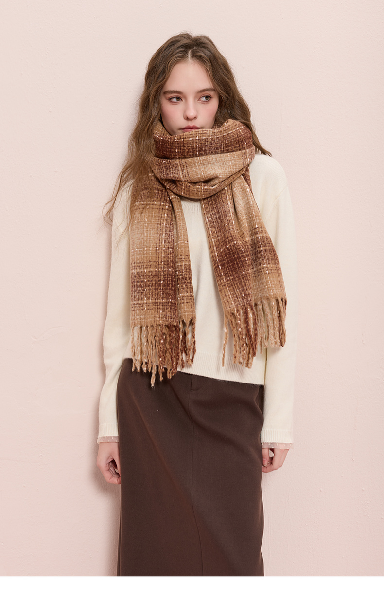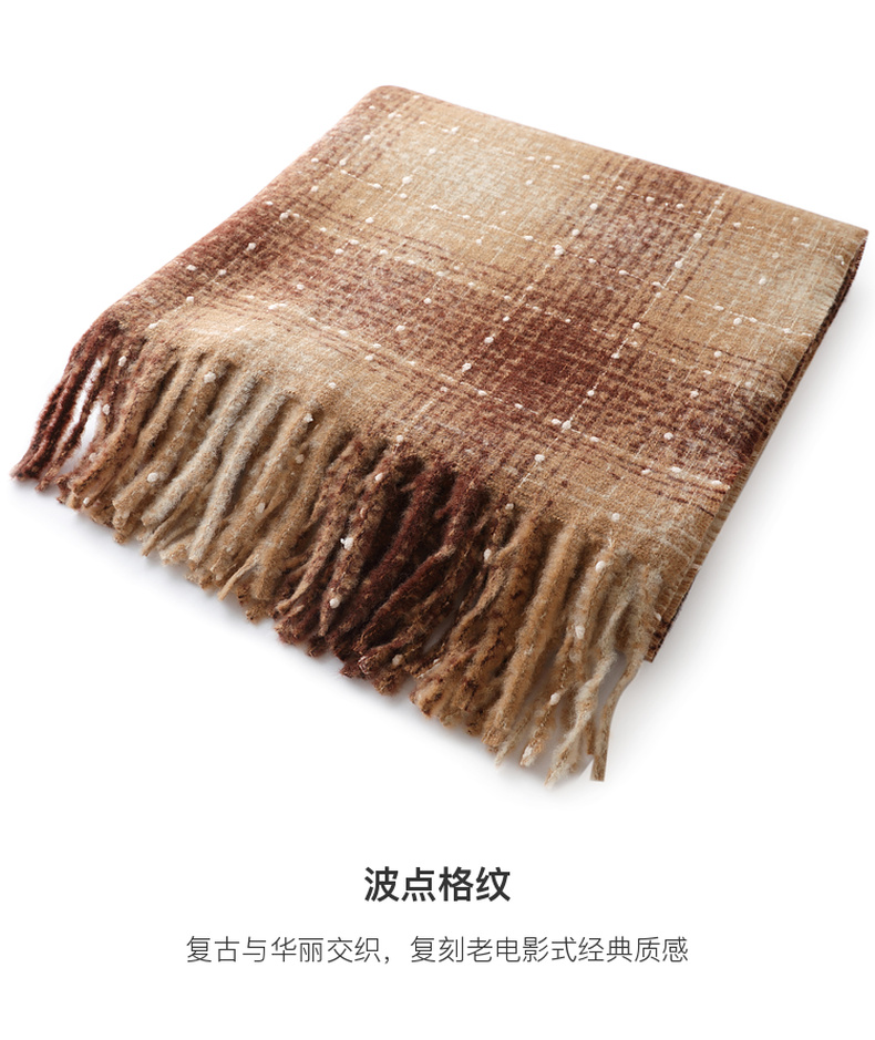 【臻暖围巾】三彩2025新款复古波点格纹流苏毛绒围脖保暖氛围感女