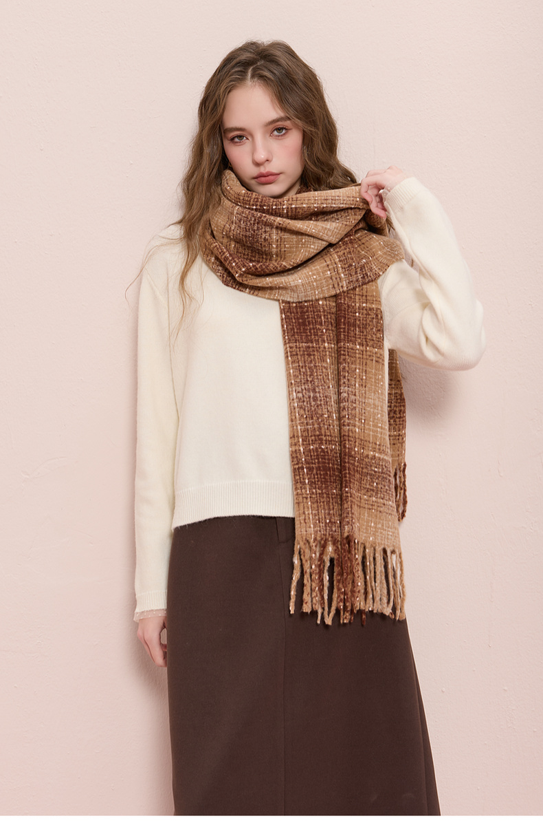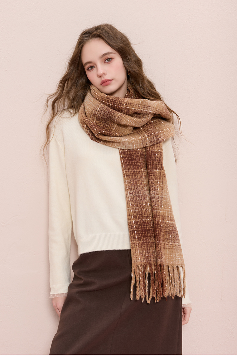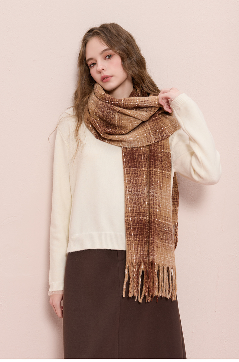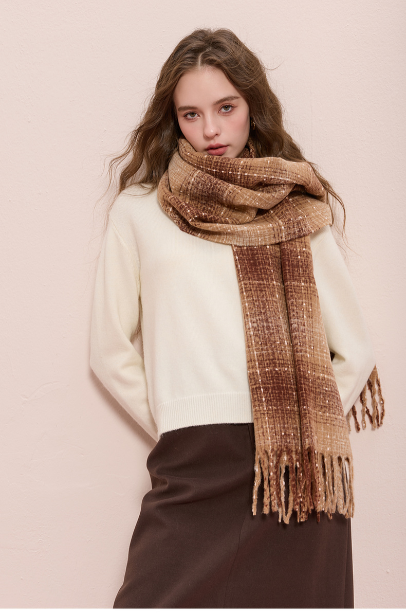 【臻暖围巾】三彩2025新款复古波点格纹流苏毛绒围脖保暖氛围感女
