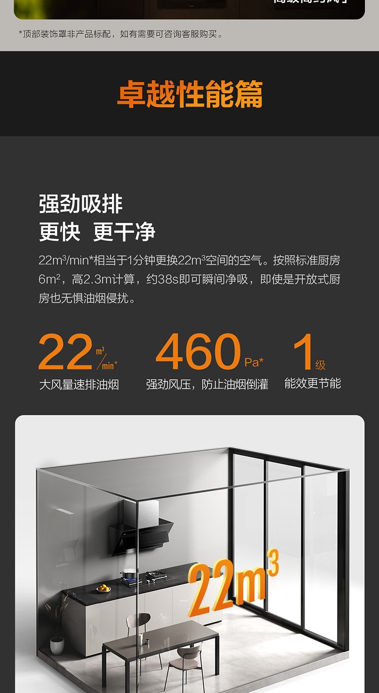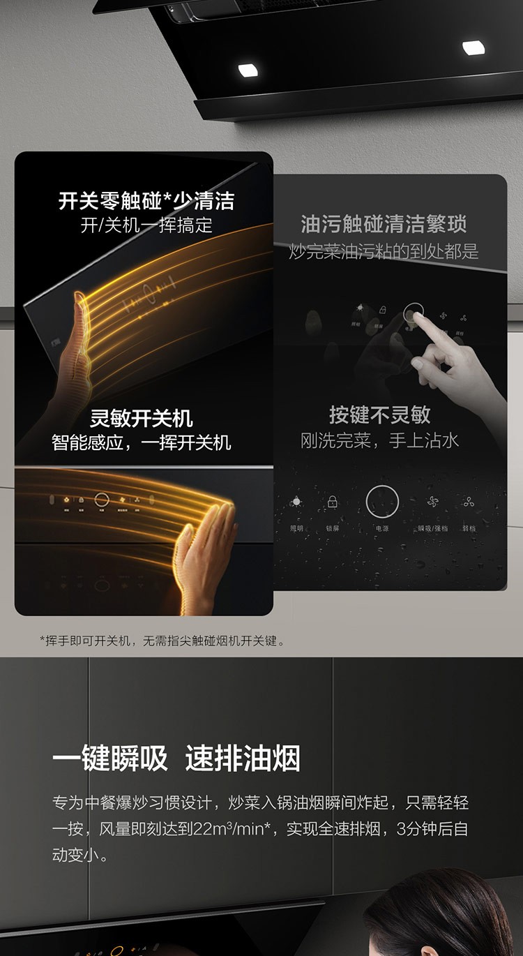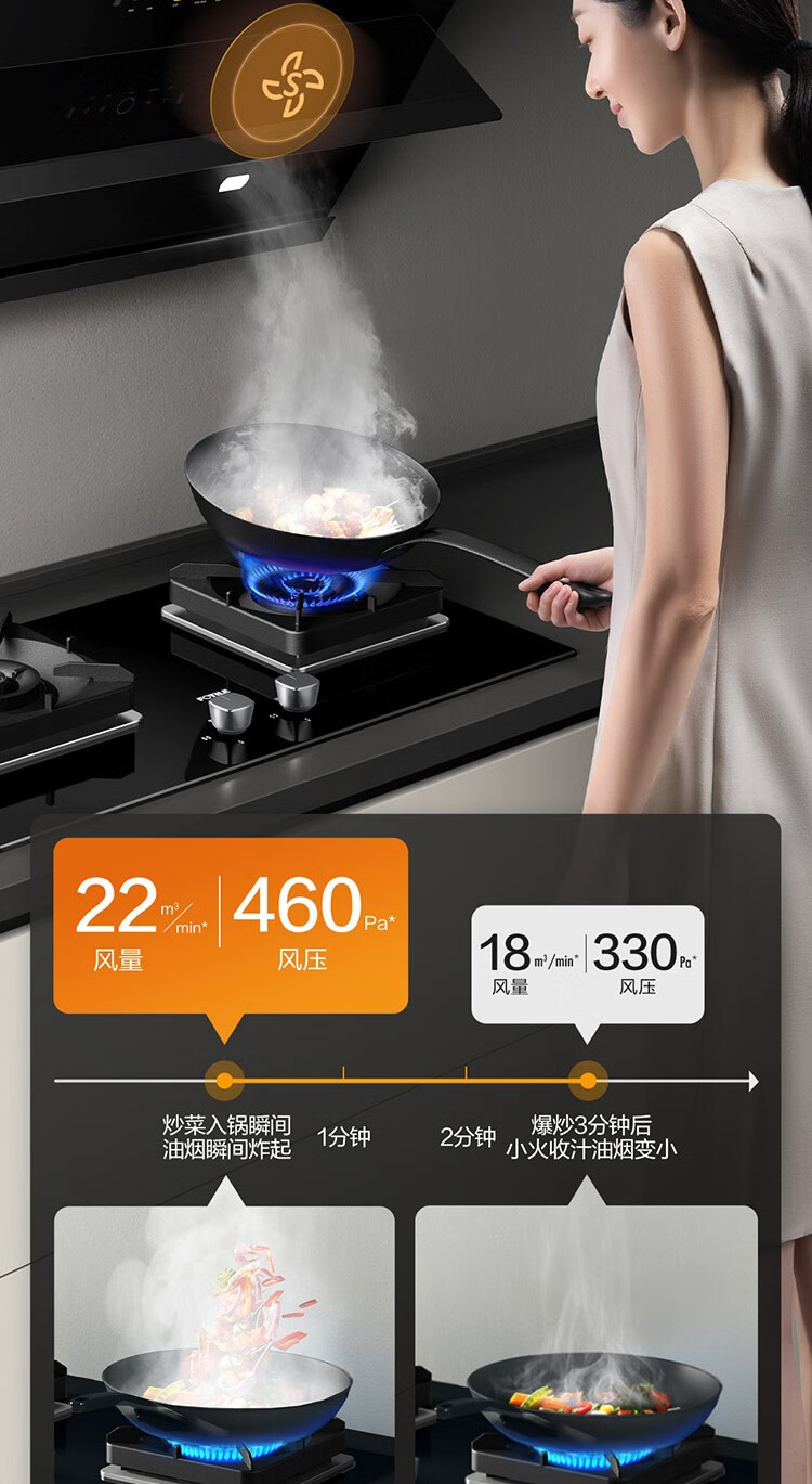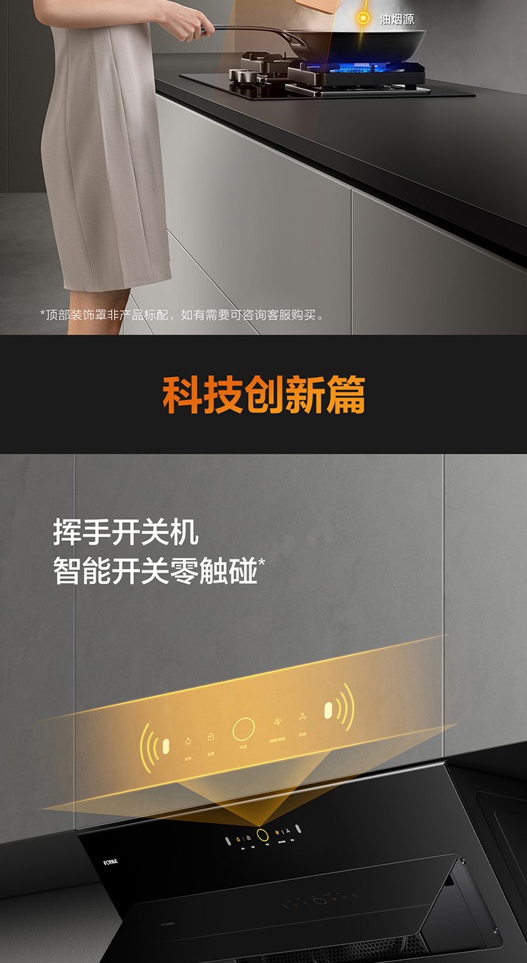 方太侧吸式近吸式抽吸脱排油烟机燃气灶家用厨房烟灶不锈钢灶具挥手22大风量大火力JCD9B+TH33G