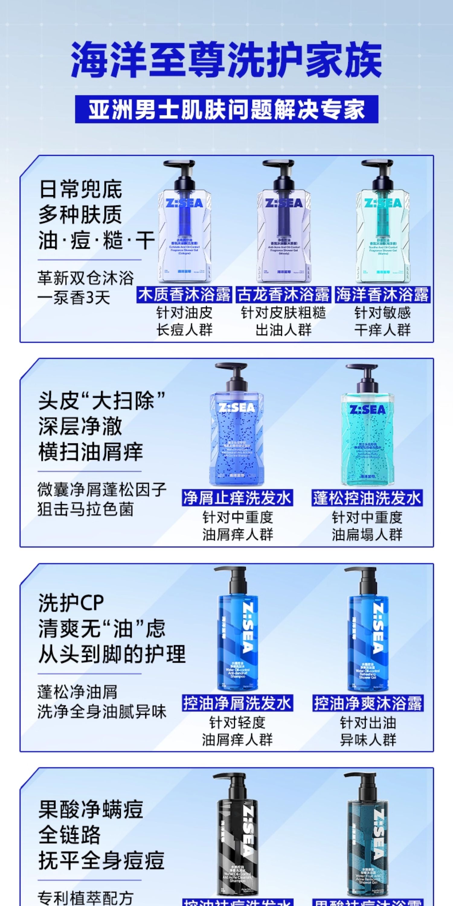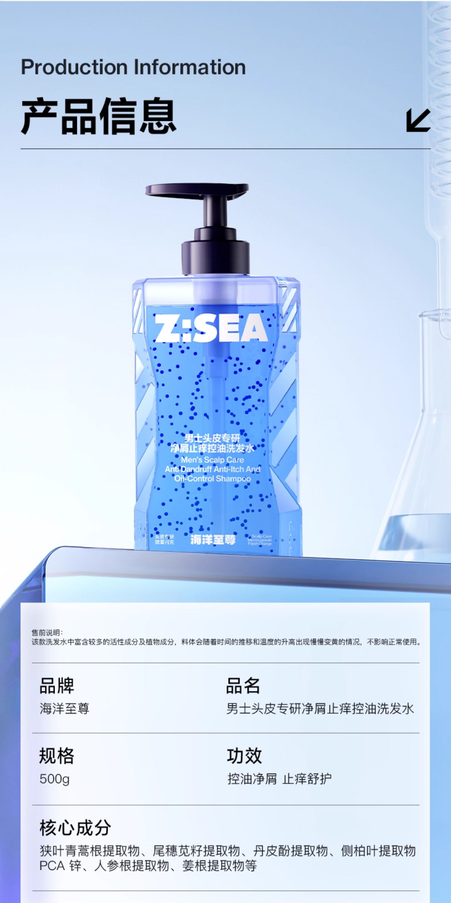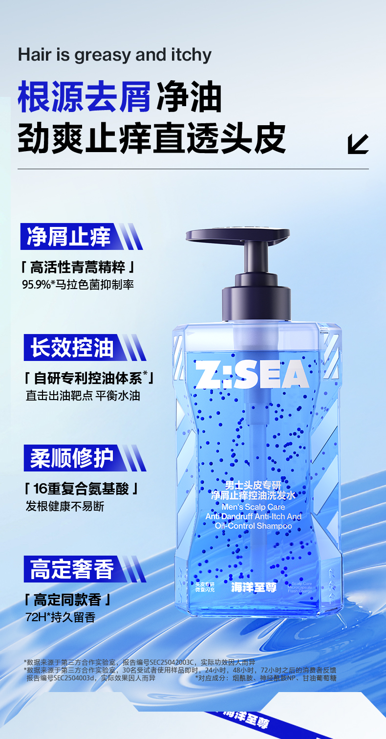 【大容量500g】海洋至尊男士头皮专研净屑止痒控油洗发水