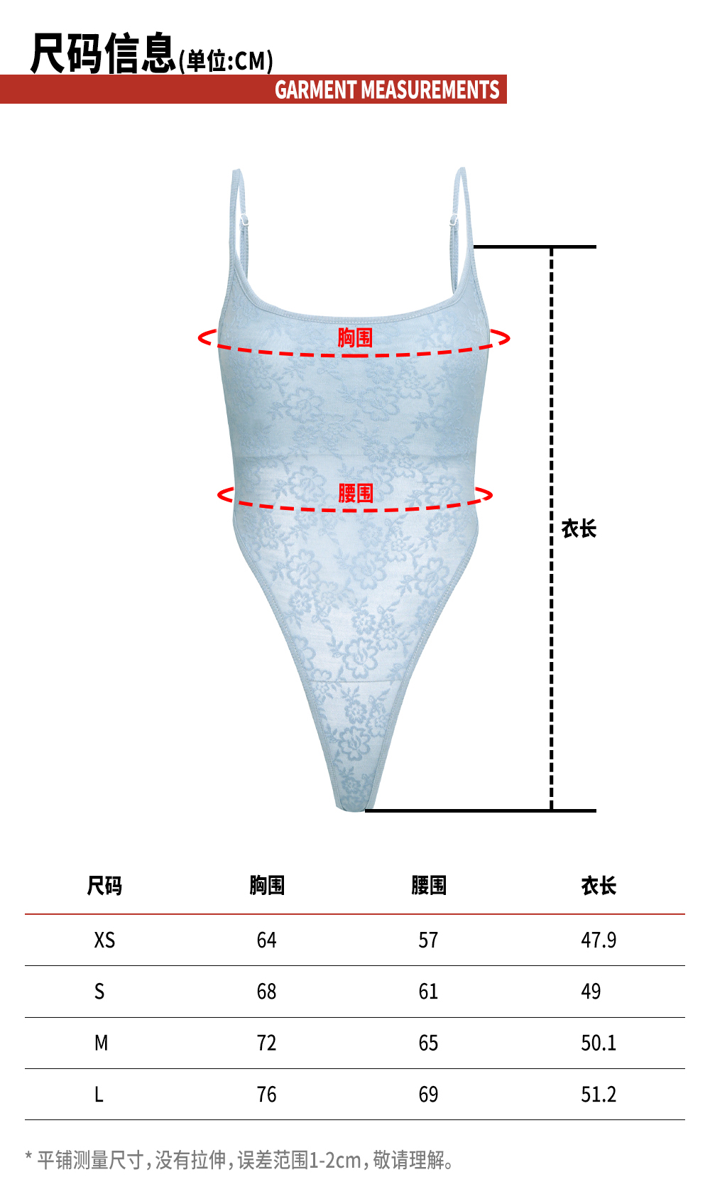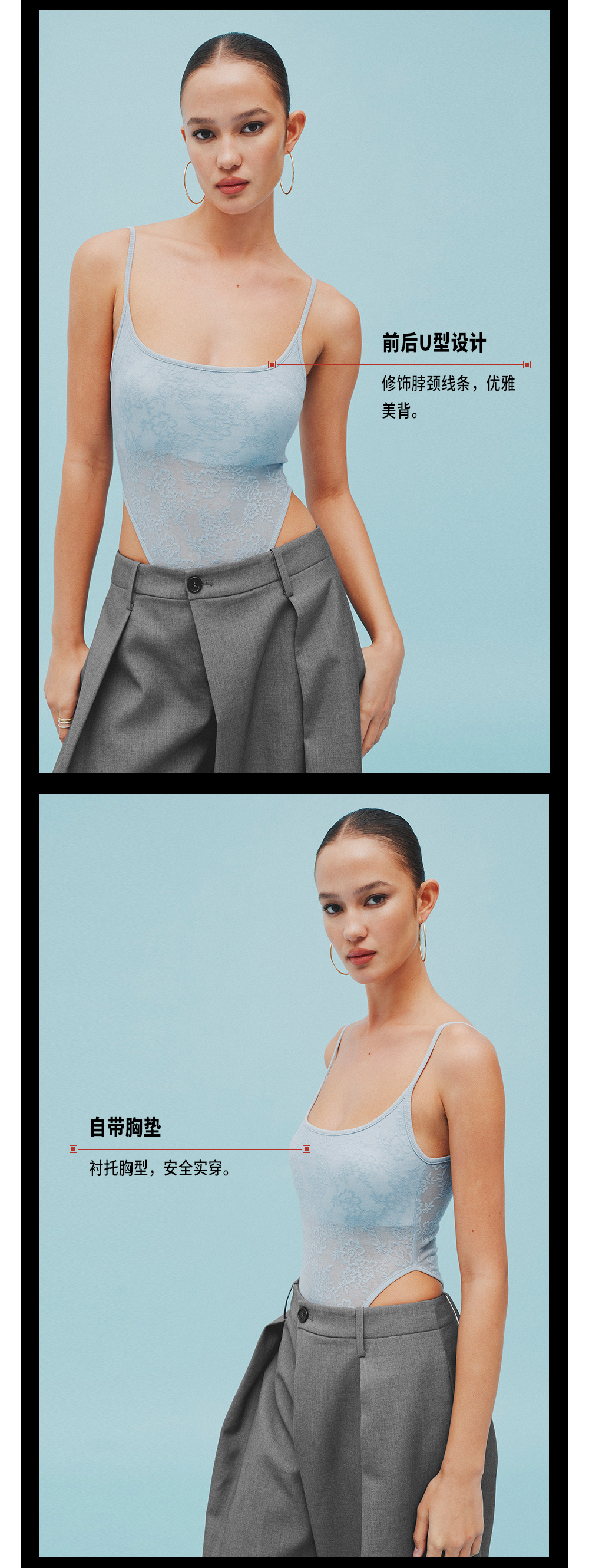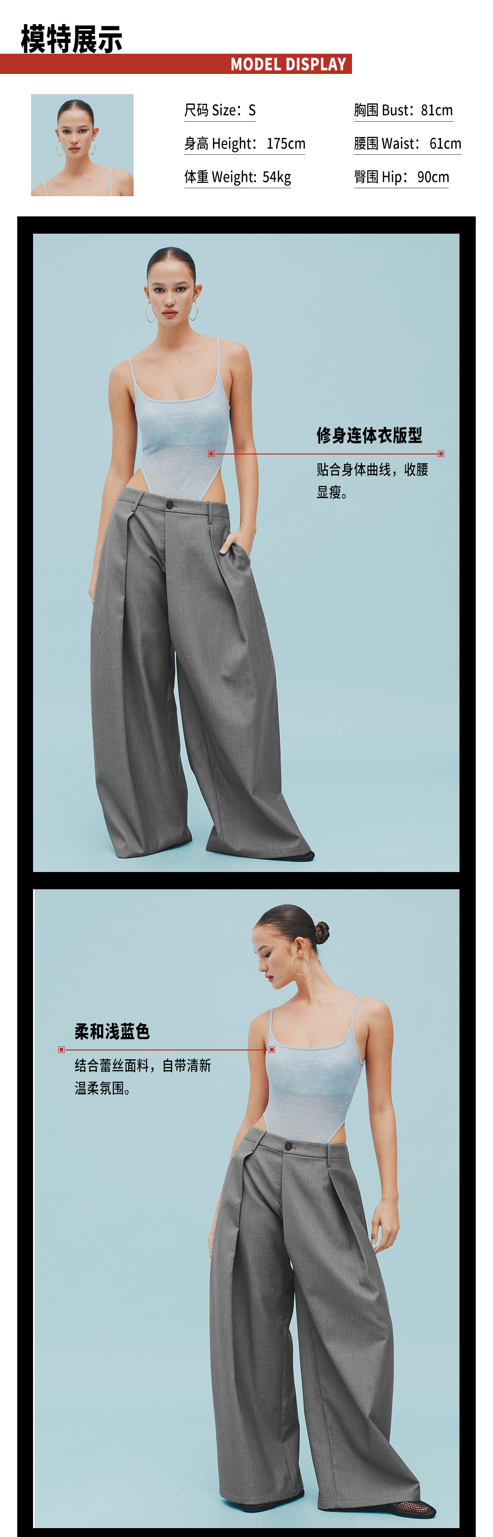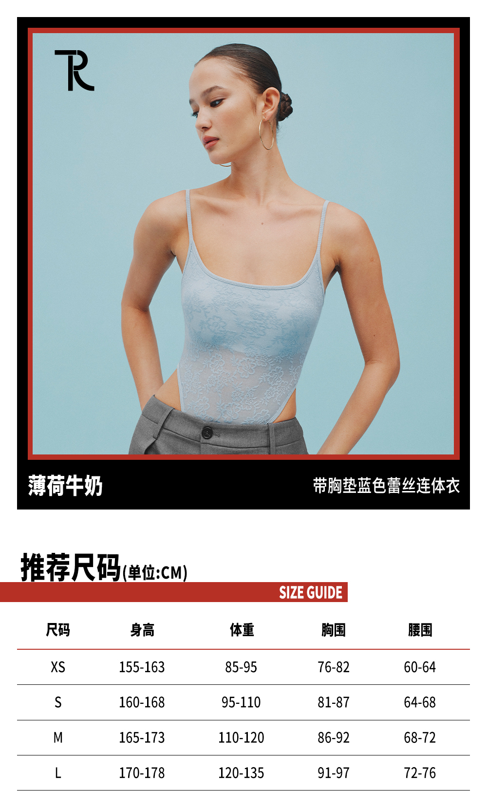 TR她热 薄荷牛奶 浅蓝色弹力蕾丝带胸垫百搭修身收腰吊带连体衣
