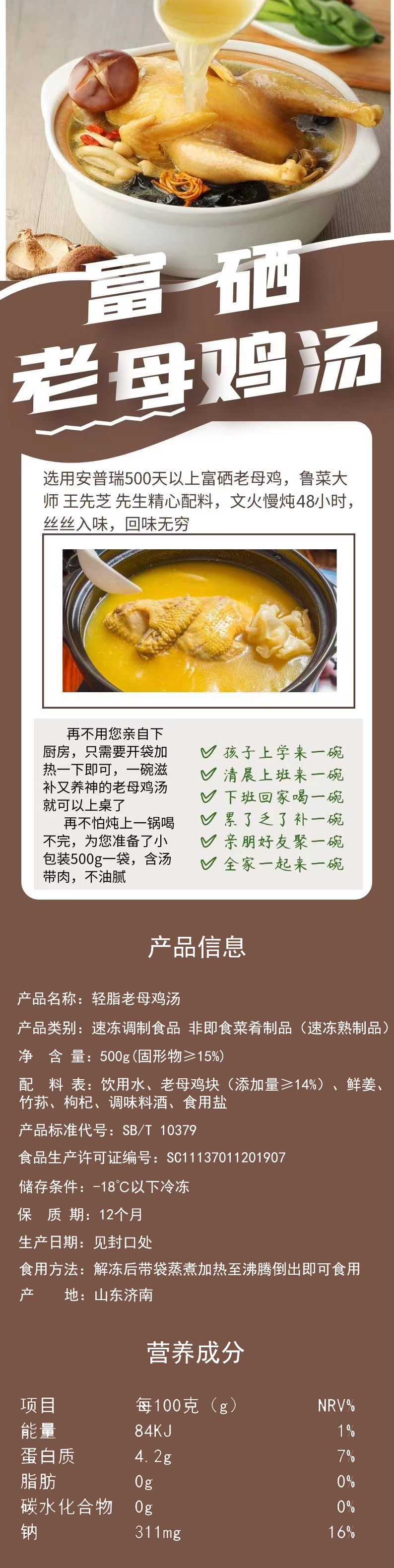 【600积分+129】宫御滋味 轻脂老母鸡汤 500g*4 丝丝入味回味无穷