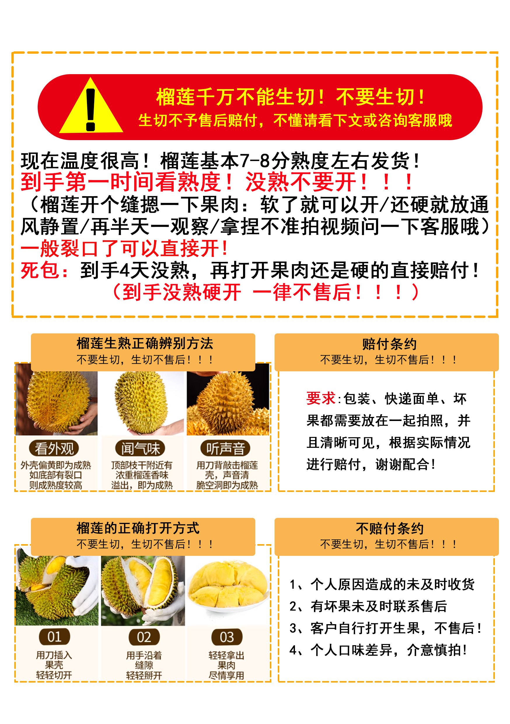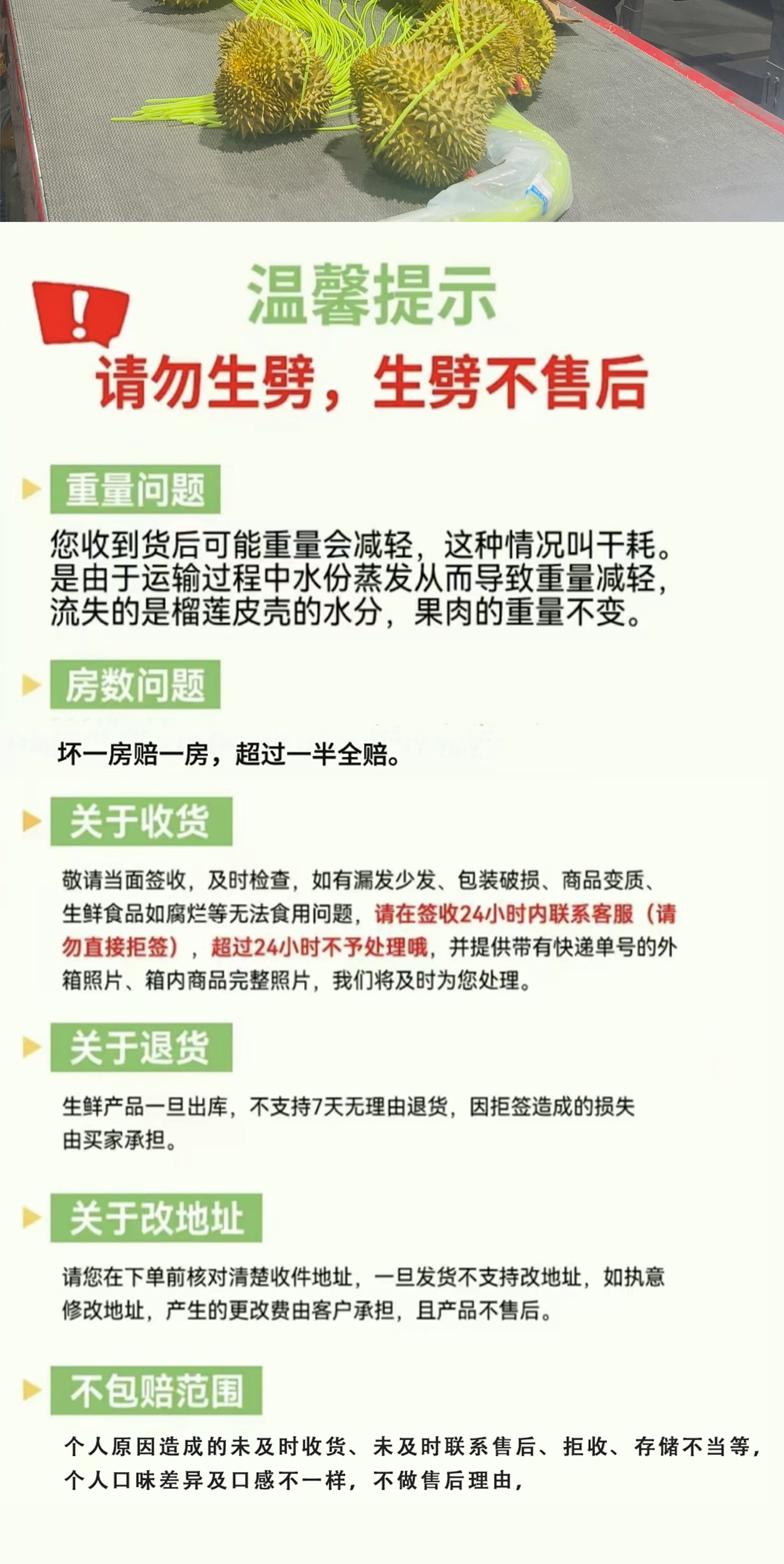 【江浙沪顺丰包邮】泰国金枕榴莲买一送一两只装,死包烂包包赔(4.4-5.5斤)