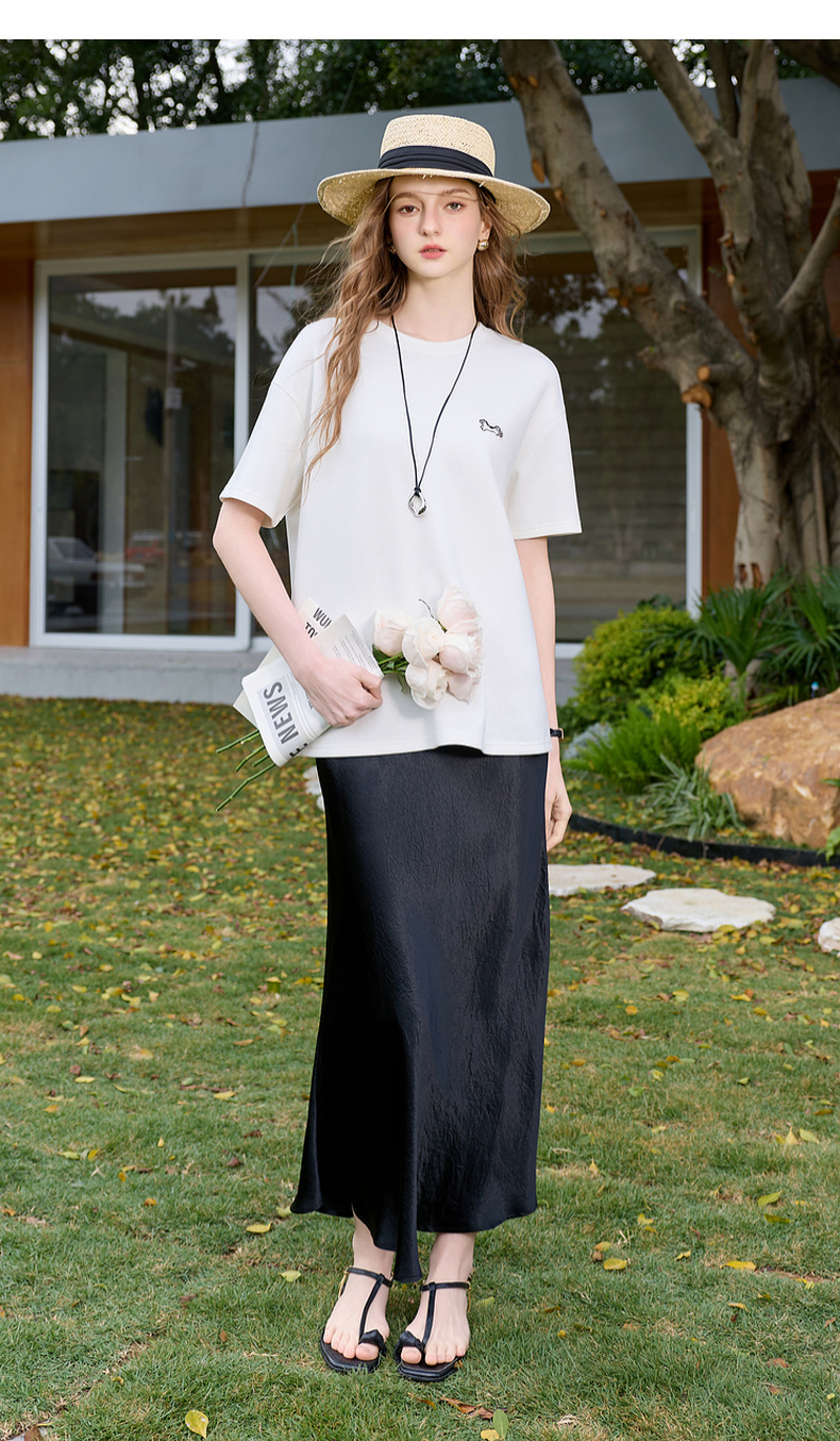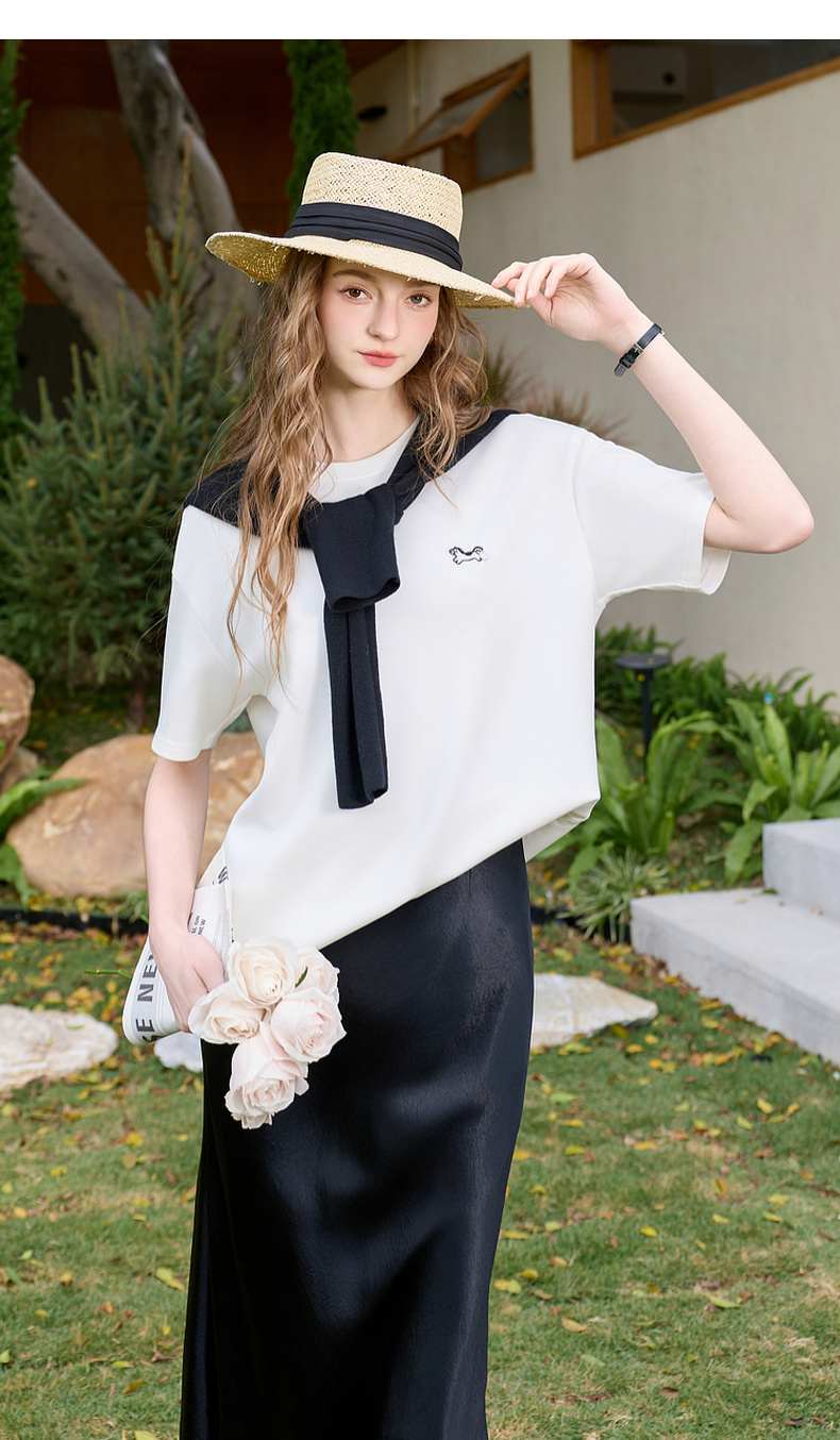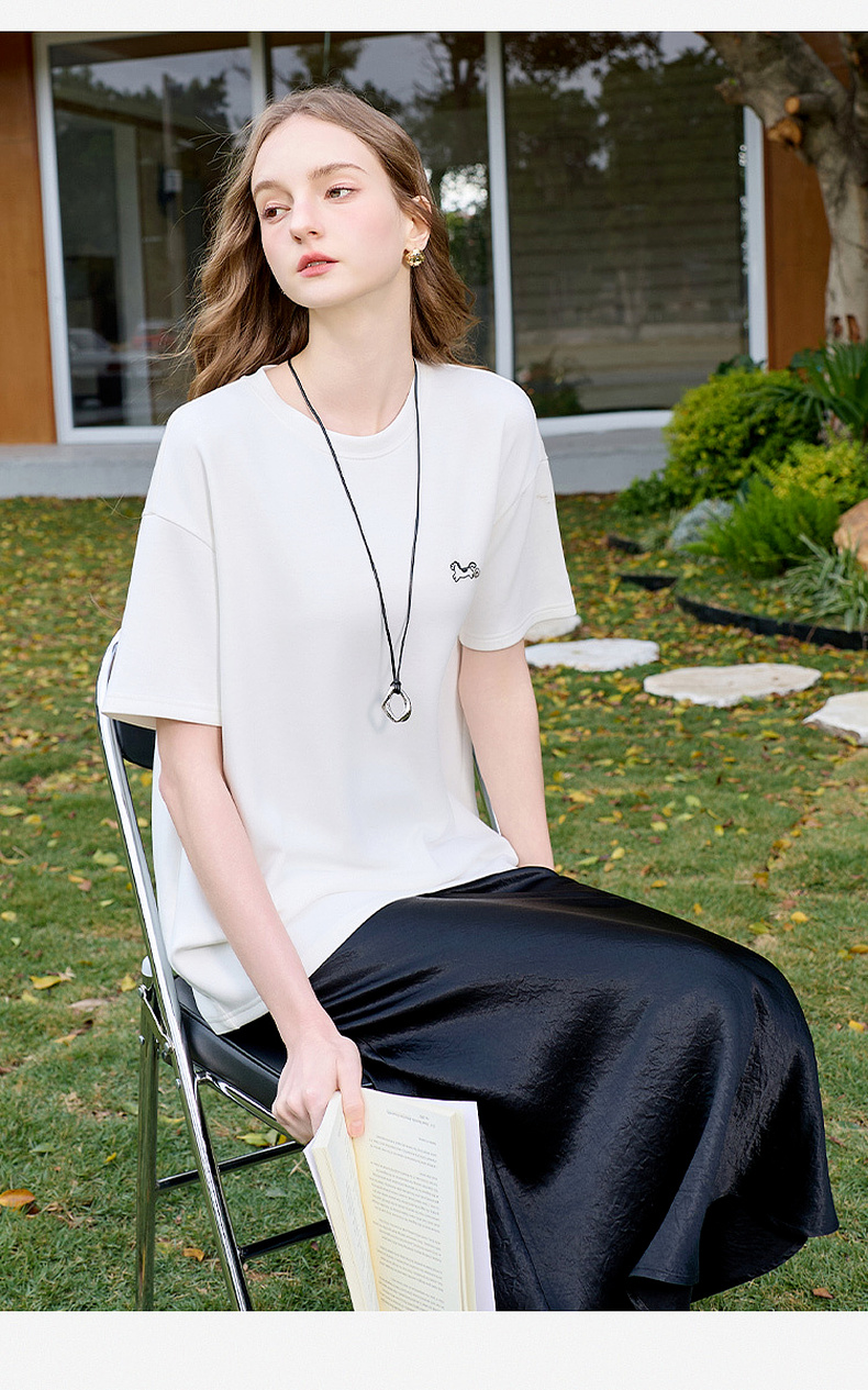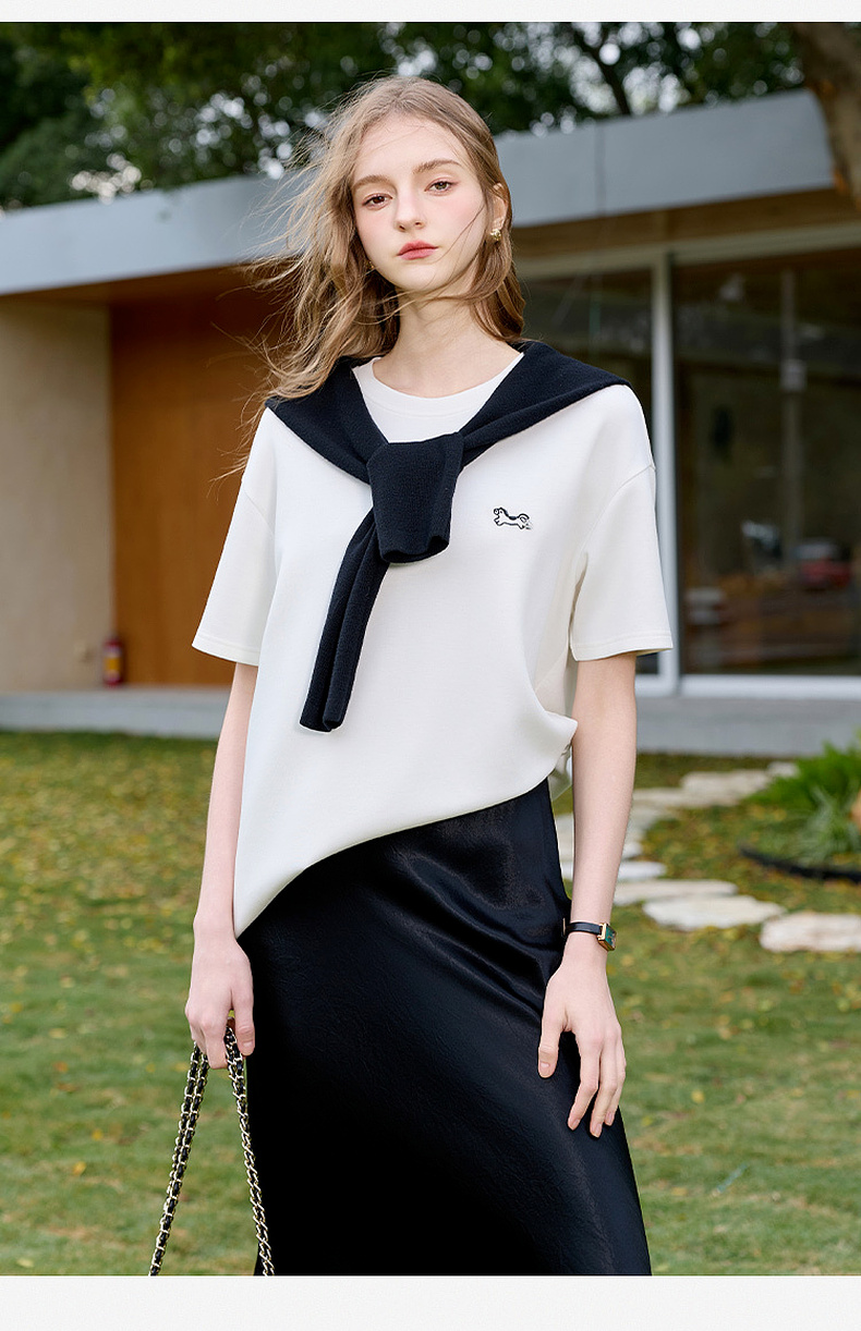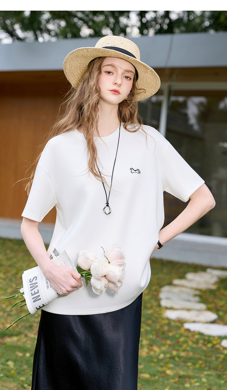 【莱赛尔】三彩2026春季新款短袖圆领宽松小马绣花T恤上衣套头衫M