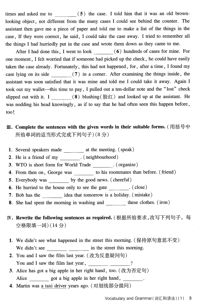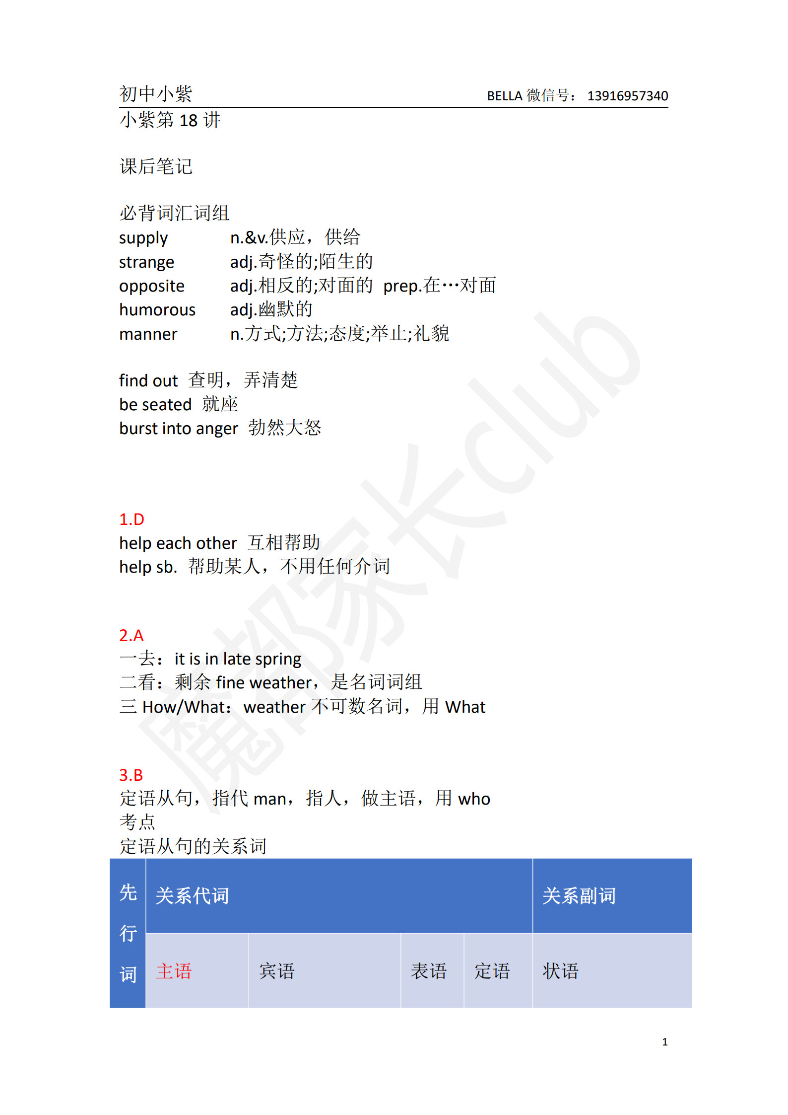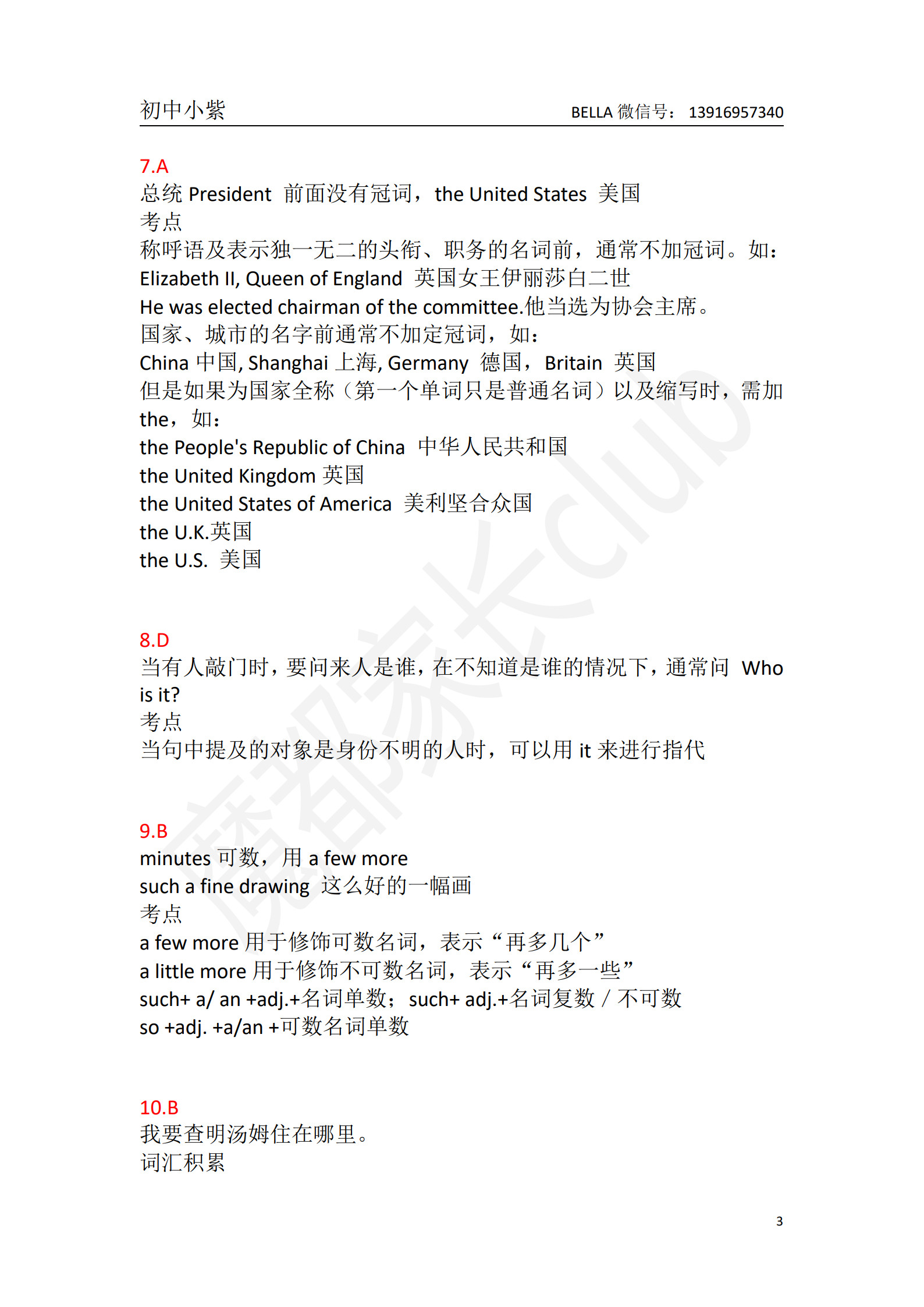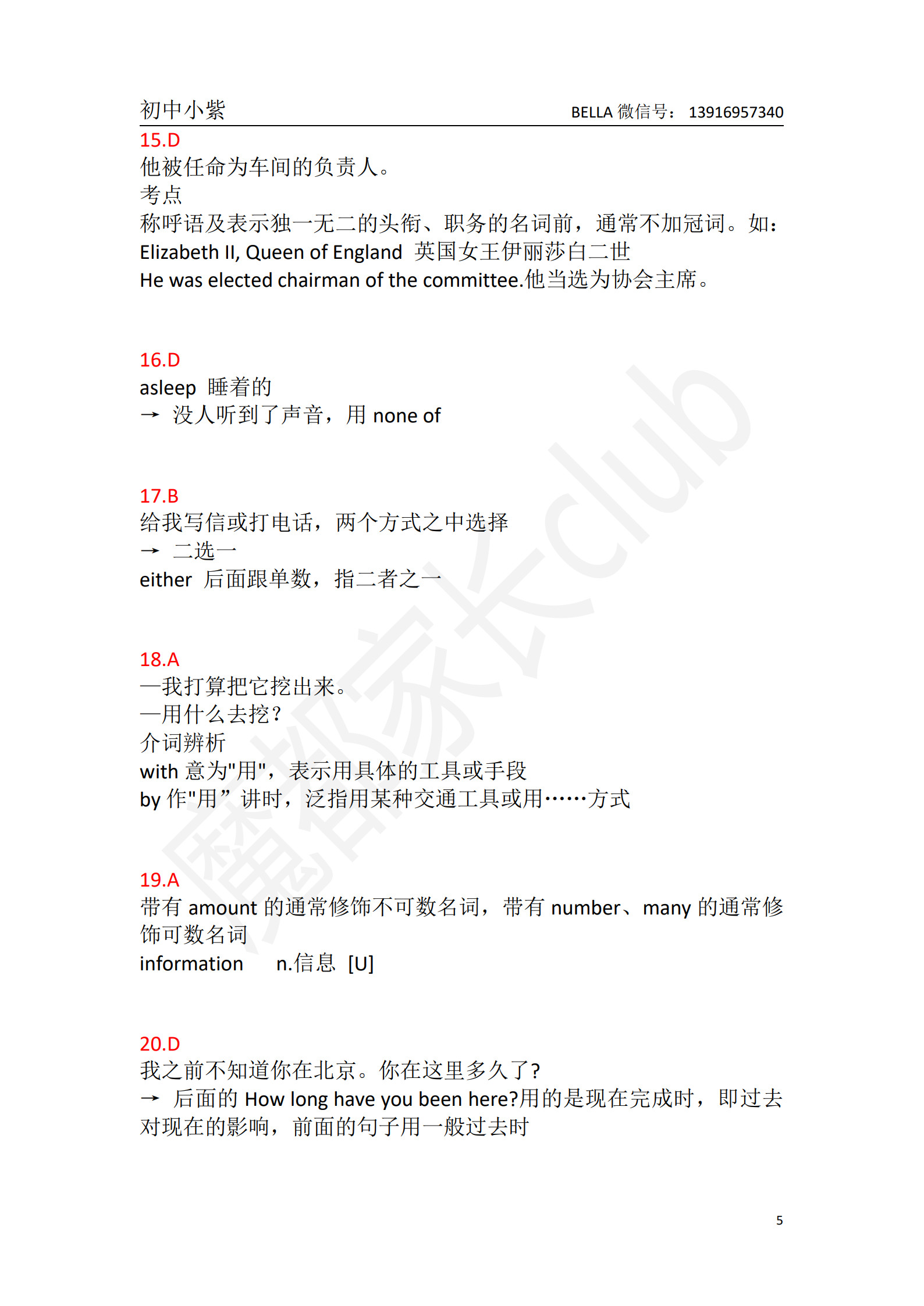 题目比较综合,可以看作是初中语法的能力加强,为中考拿高分做准备。