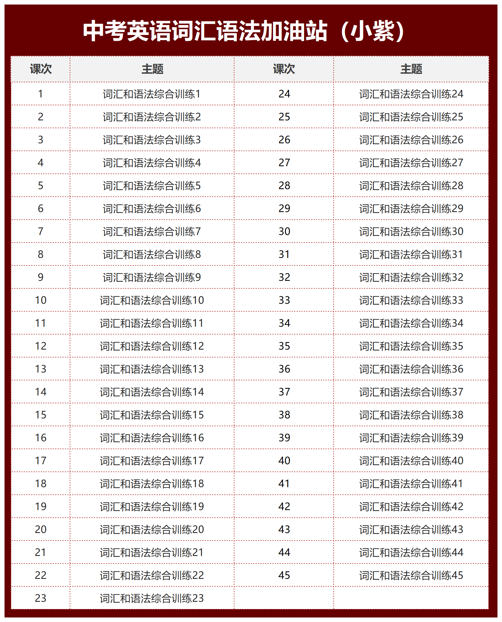 中考英语词汇语法加油站(自备教材,老师提供电子版)