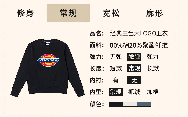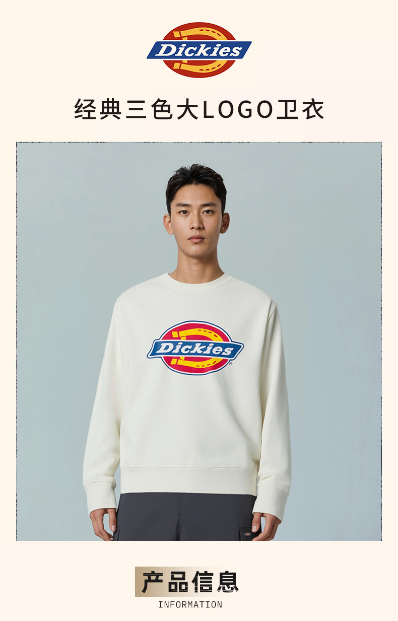 Dickies经典大LOGO卫衣 圆领长袖宽松休闲百搭上衣男女情侣款 DK0A88MI