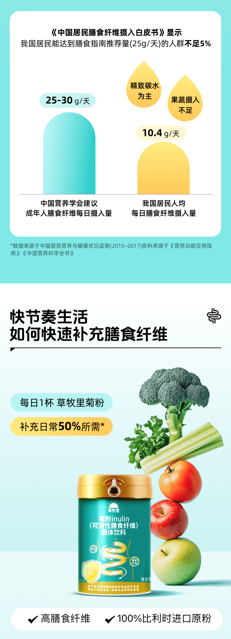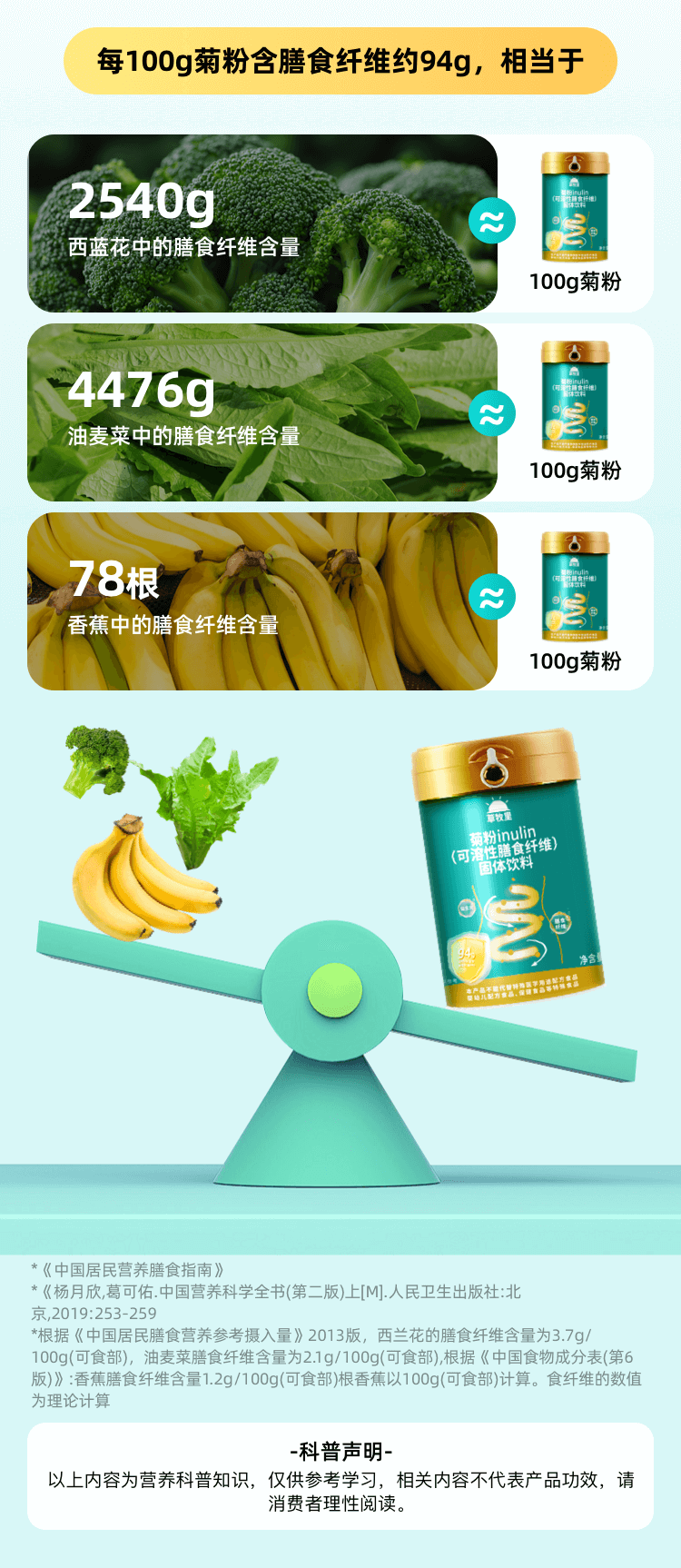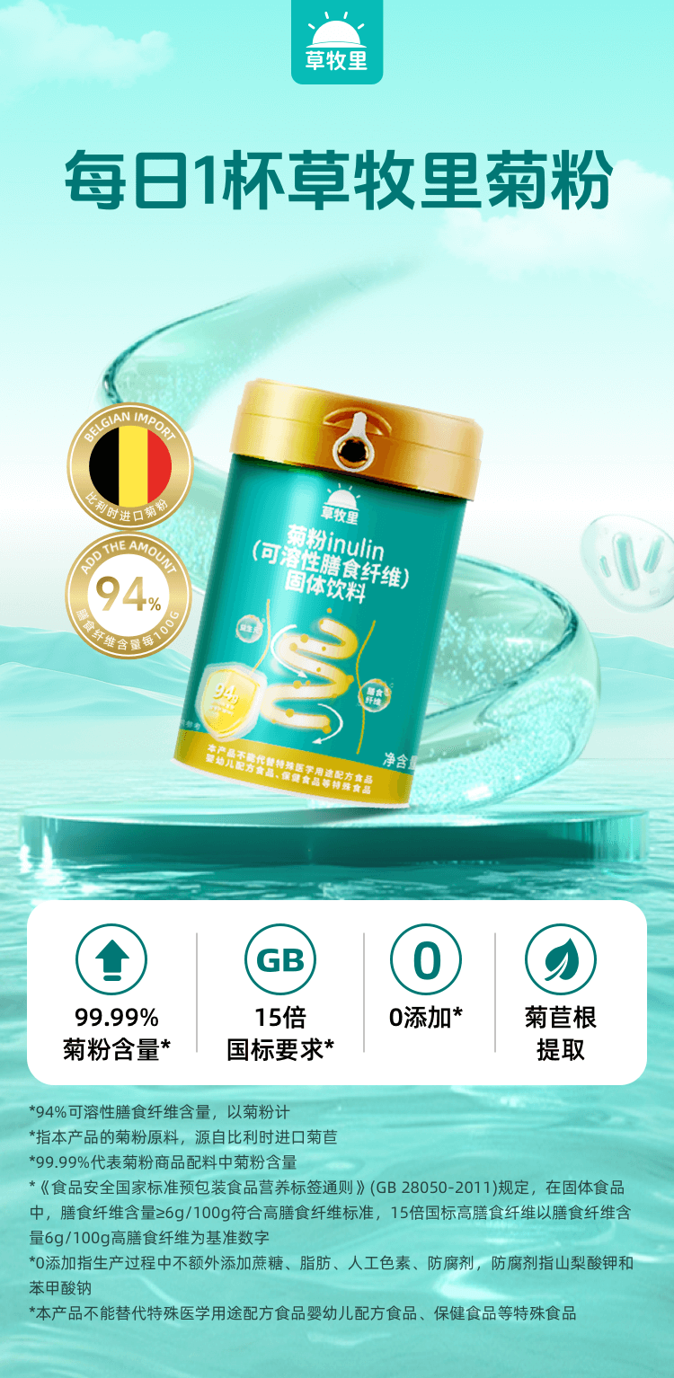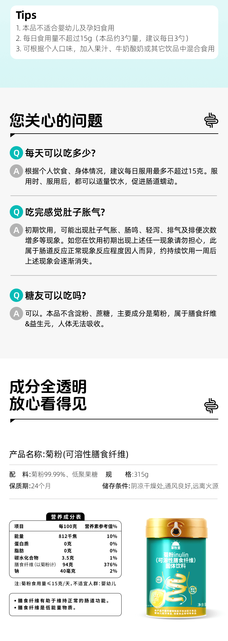 【植物菊苣根提取】草牧里 可溶性膳食纤维菊粉 315g/罐 早晚一杯