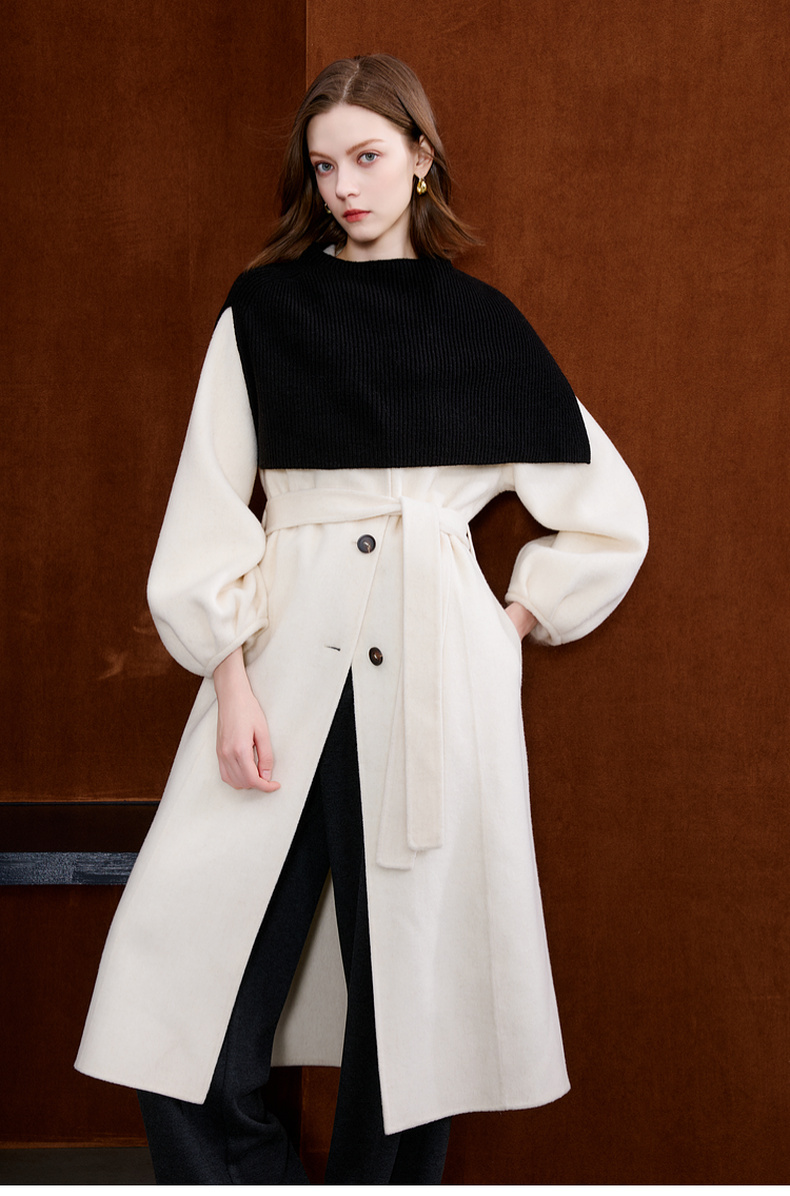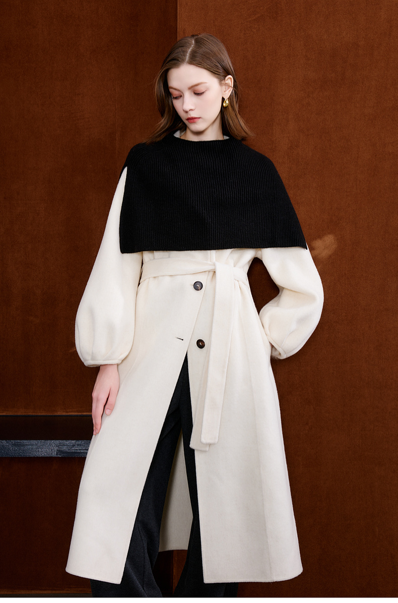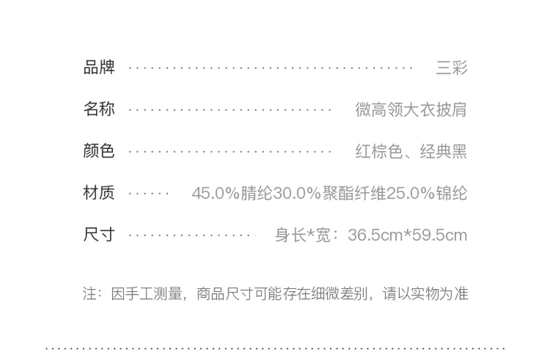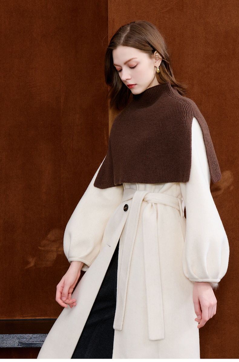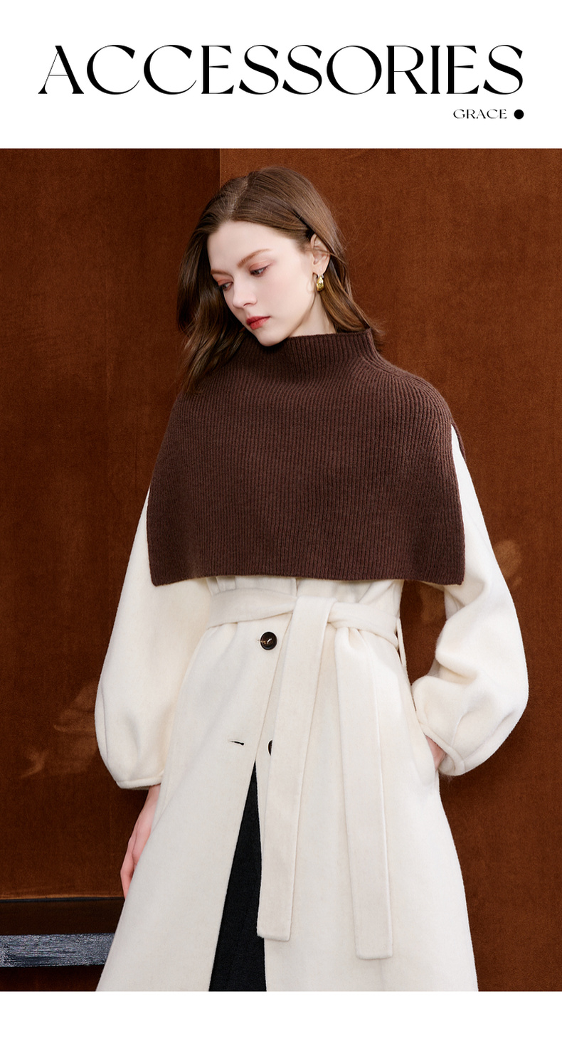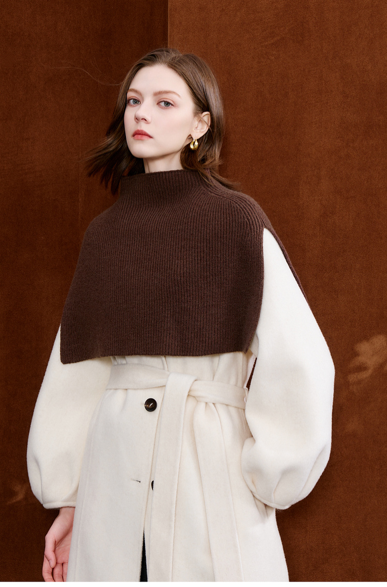 三彩2025新款纯色微高领外搭大衣披肩针织保暖百搭时髦氛围感短款