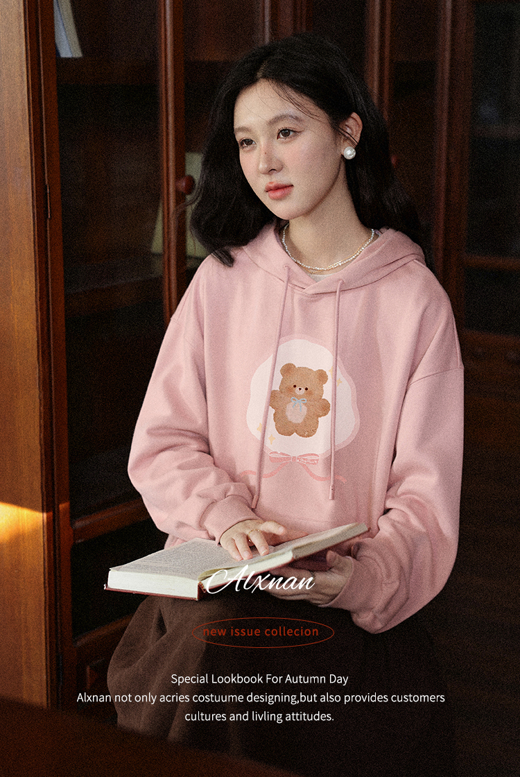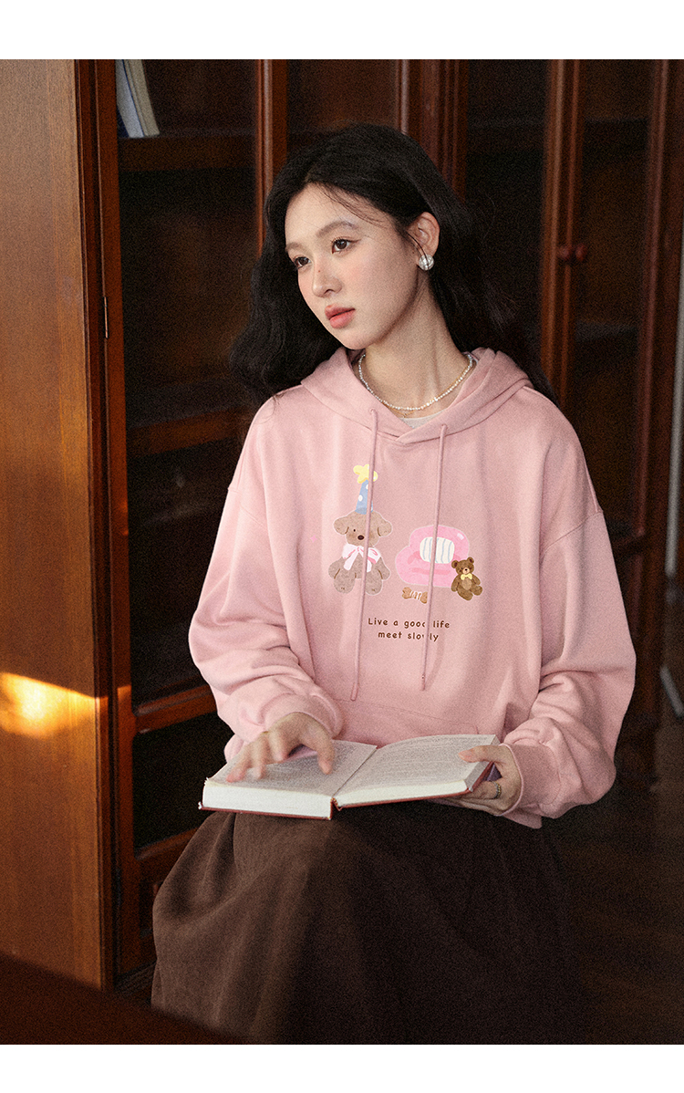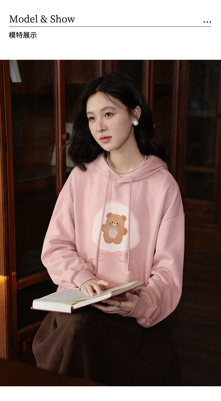鹿向南「云朵洛丽」可爱小熊粉色连帽卫衣女初秋宽松百搭长袖上衣