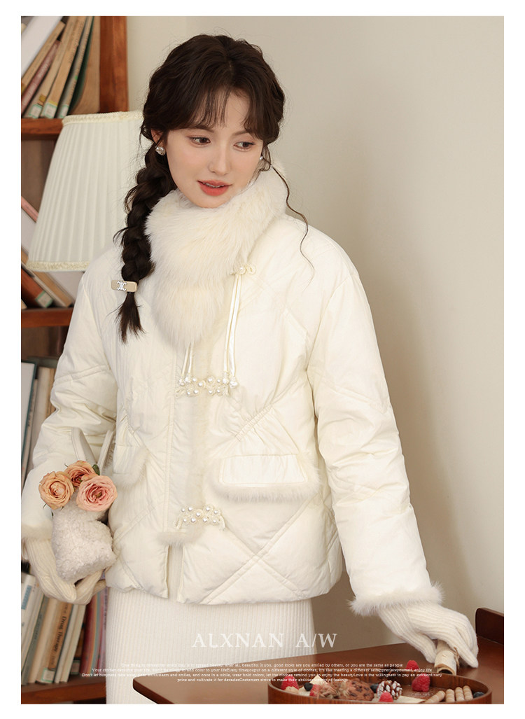 鹿向南「温柔白月光」90白鸭绒真毛领羽绒外套2025冬季羽绒服外套