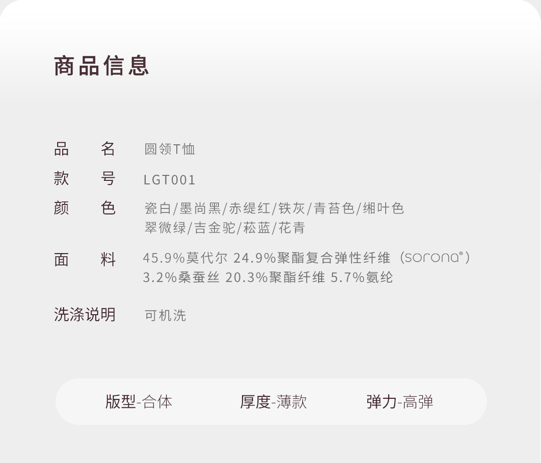 【森呼吸六号】桑蚕丝纯色百搭短袖T恤LGT001