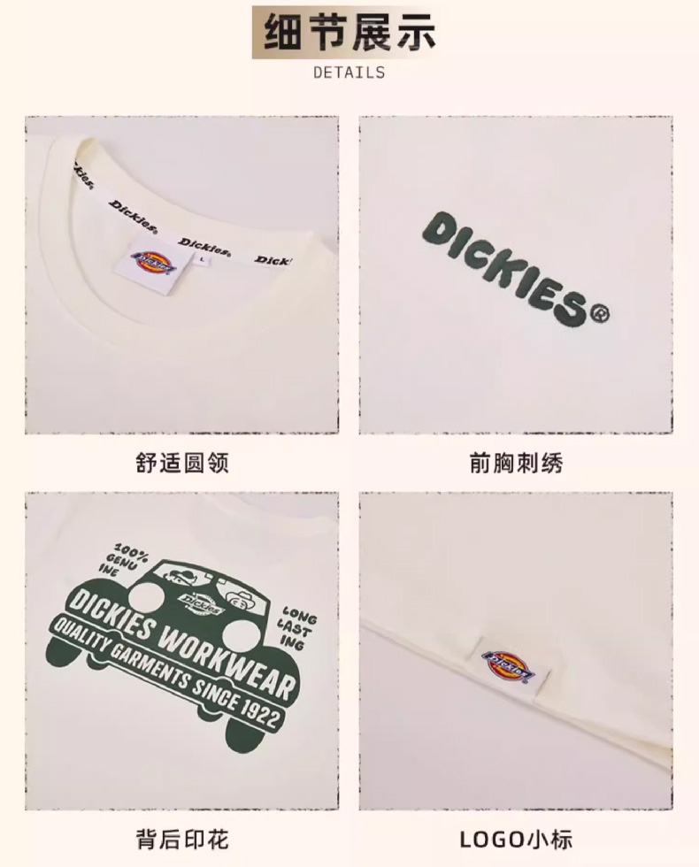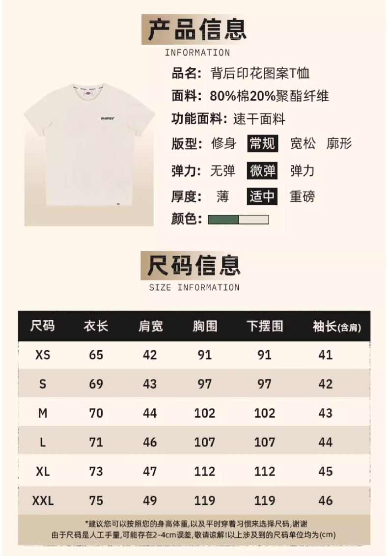 Dickies背后趣味印花复古休闲短袖t恤男女同款圆领印花半袖上衣 DK0A88NX