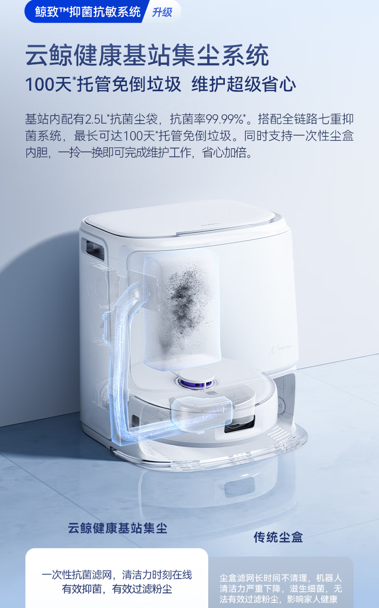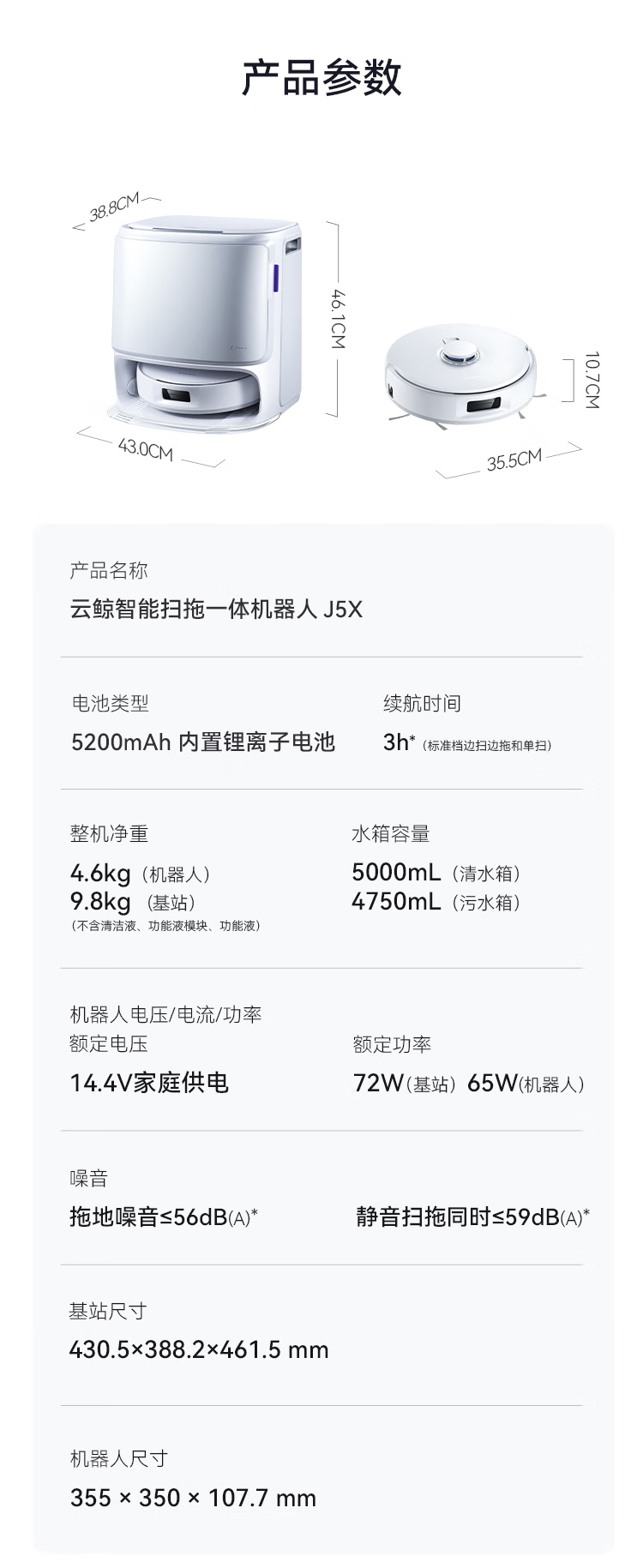 云鲸-扫地机器人-J5X-基站集尘-上下水版-白色
