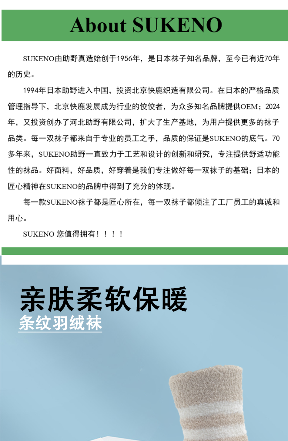 SUKENO秋冬款羽绒纱袜子保暖中筒袜柔软地板袜家居袜