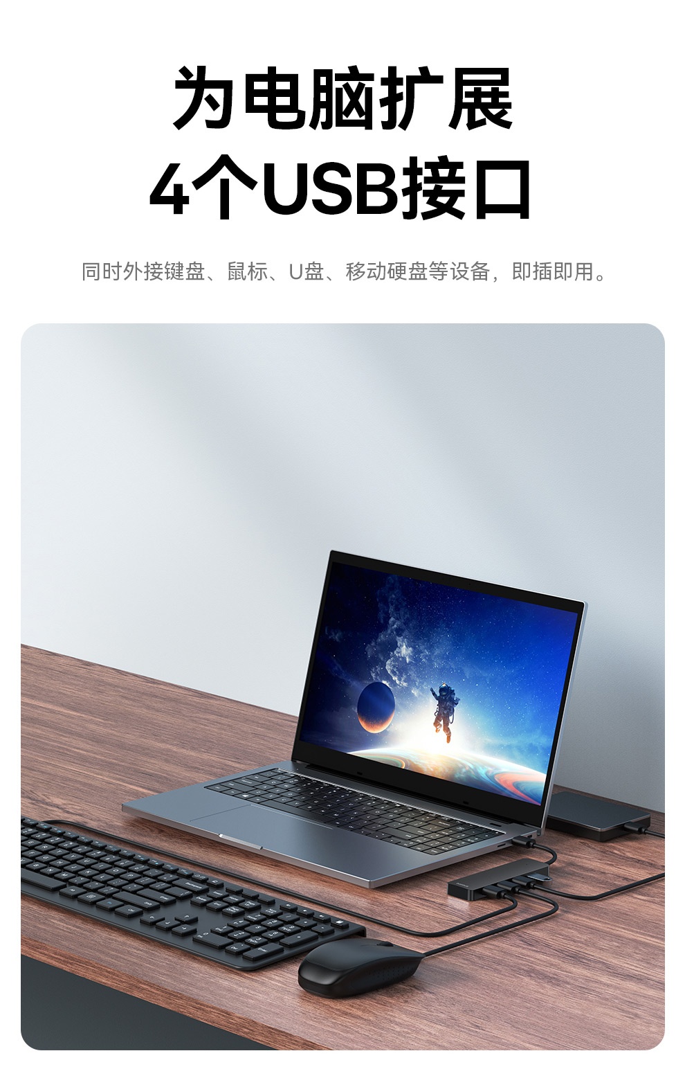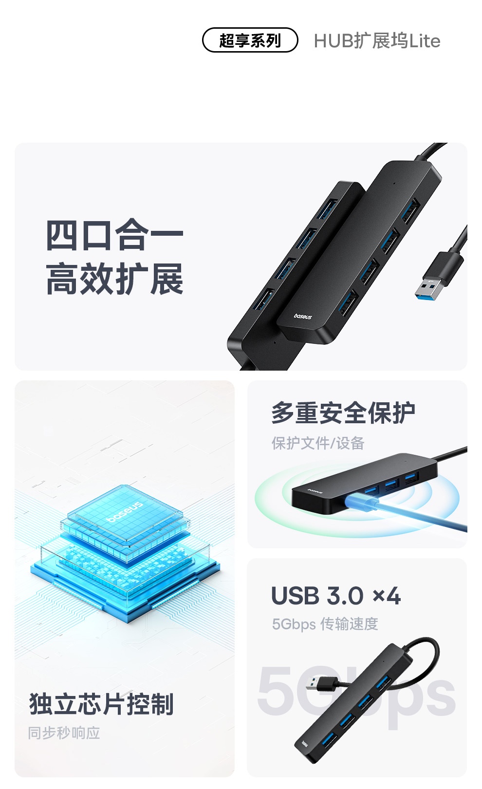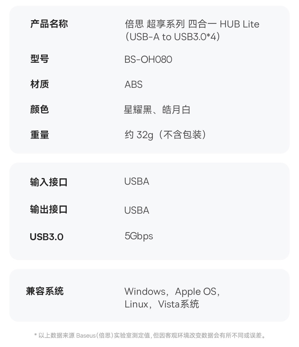倍思超享系列 四合一HUB扩展坞Lite BS-OH080 USB3.0接口