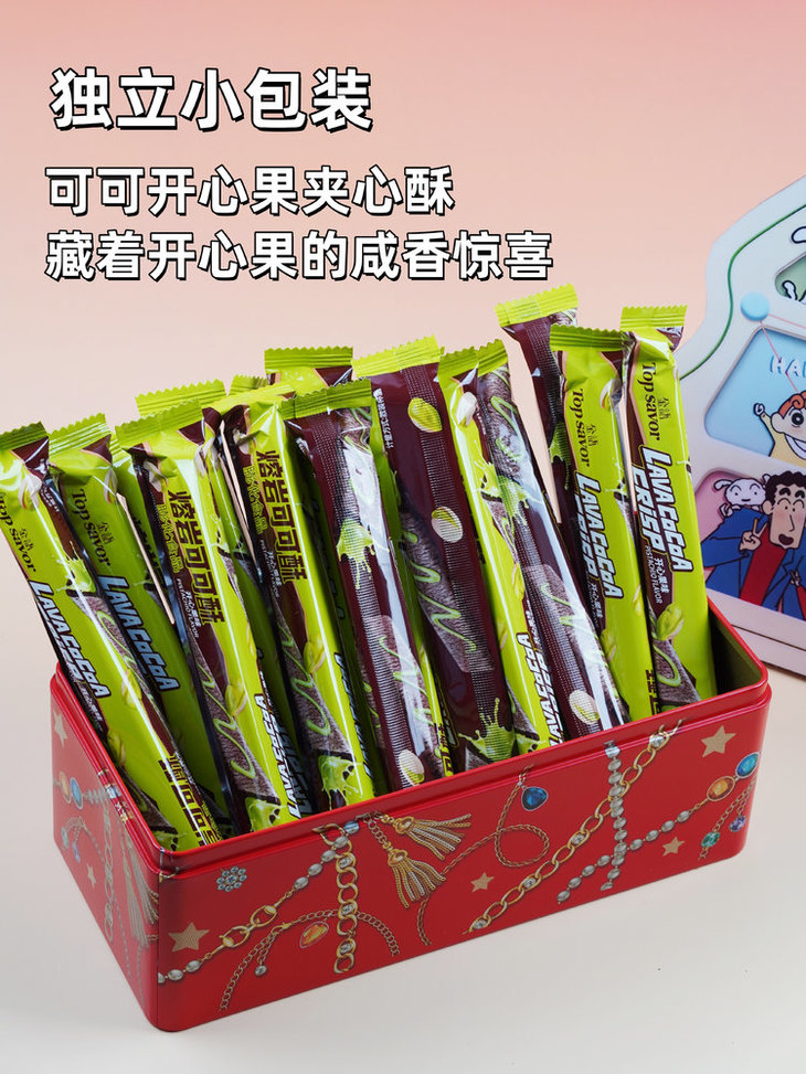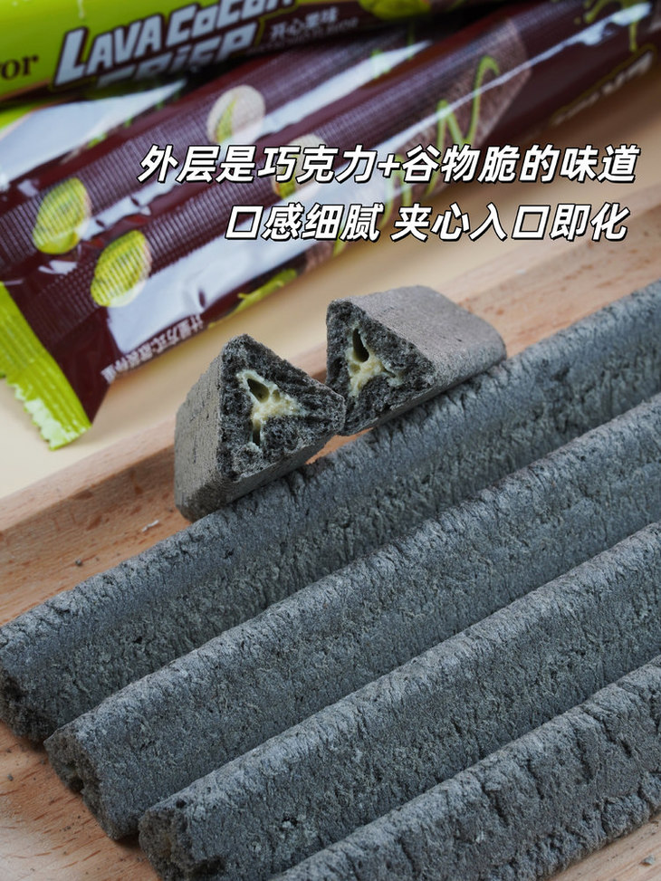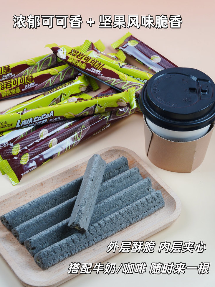 ✅浓郁可可香 + 开心果坚果风味脆香,两重风味组合,外层酥脆,内层夹心