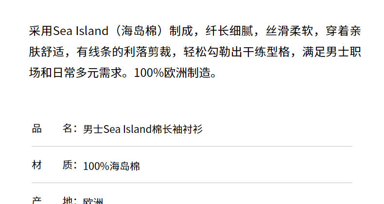 【海岛棉系列】SUNSPEL男士经典款Sea Island棉长袖衬衫秋冬休闲