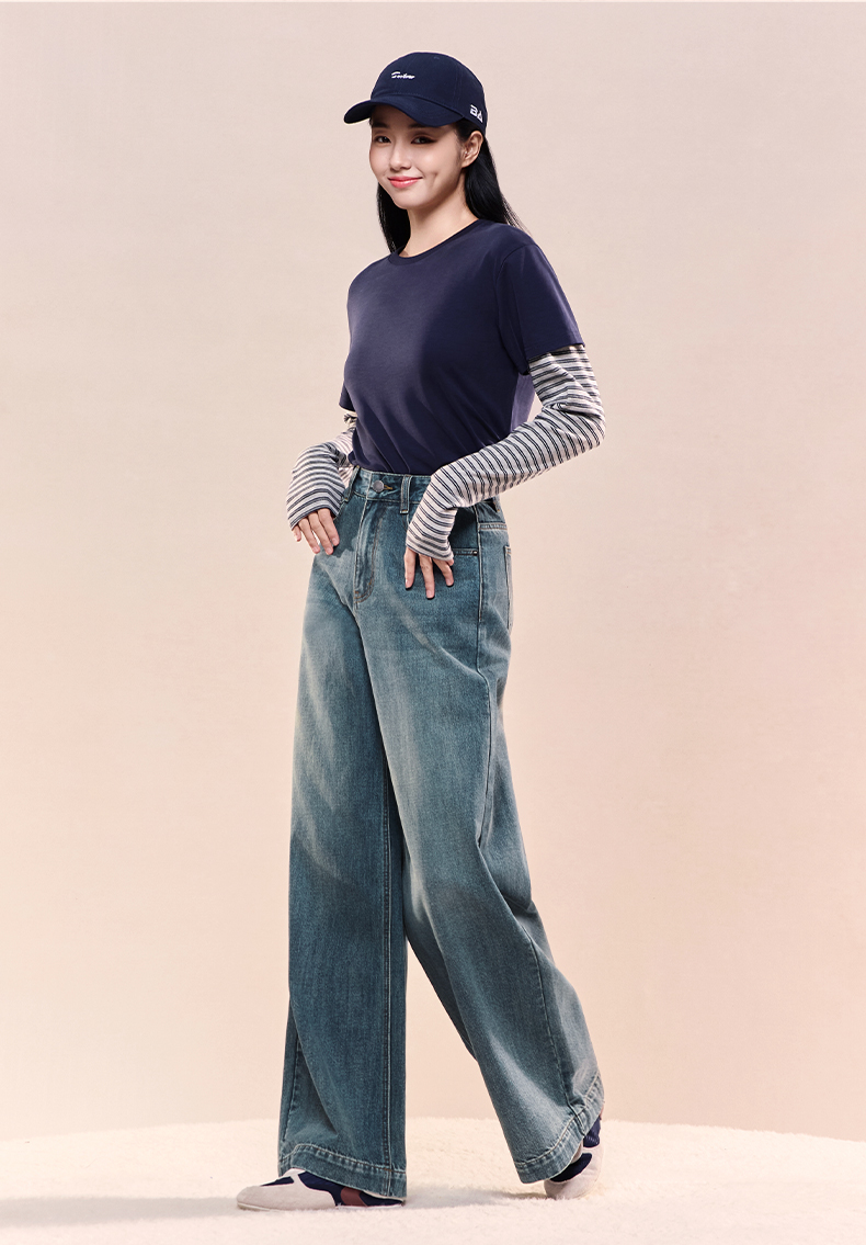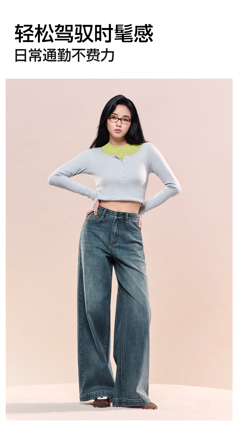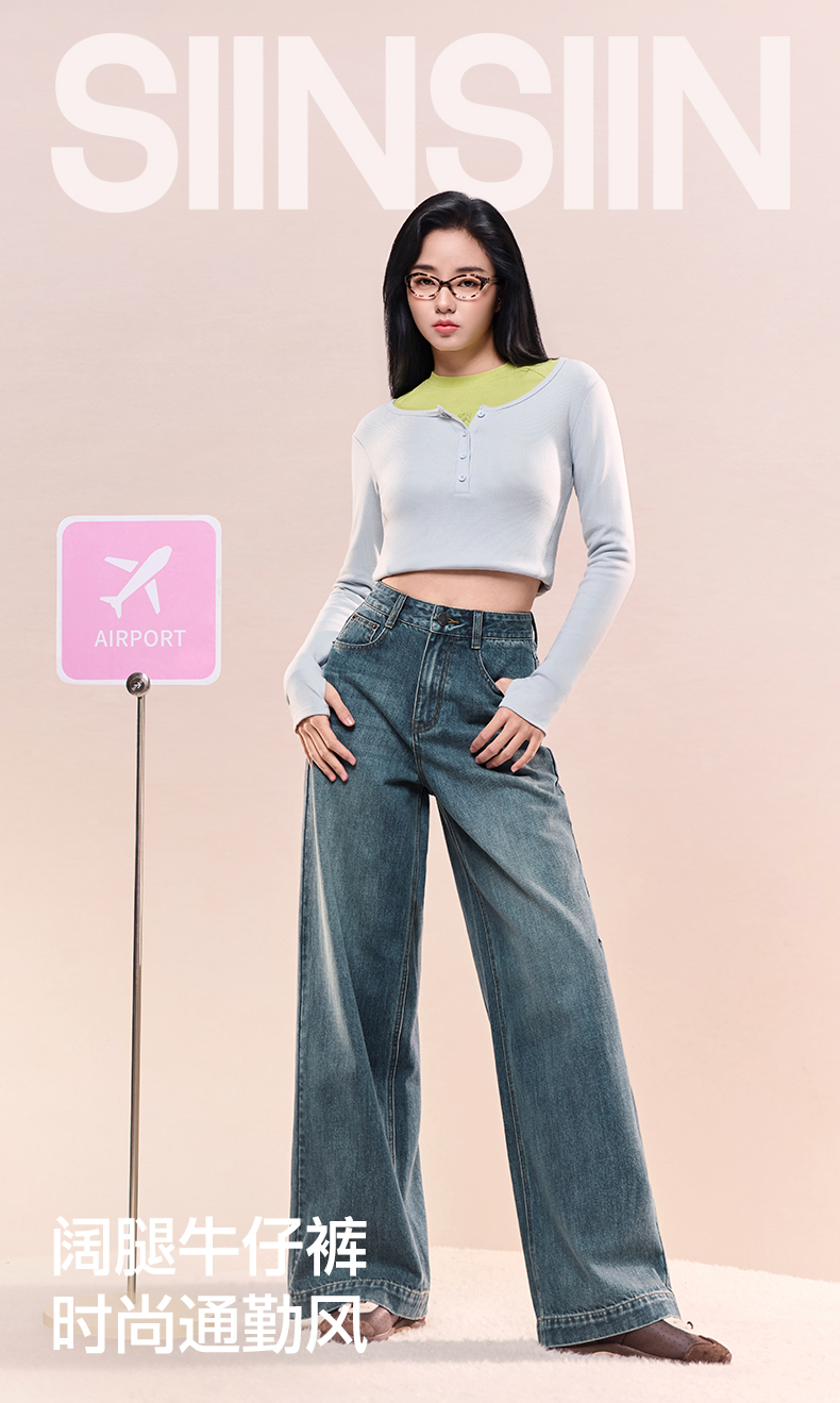 SIINSIIN阔腿牛仔裤宽松秋季2025新款高腰直筒裤
