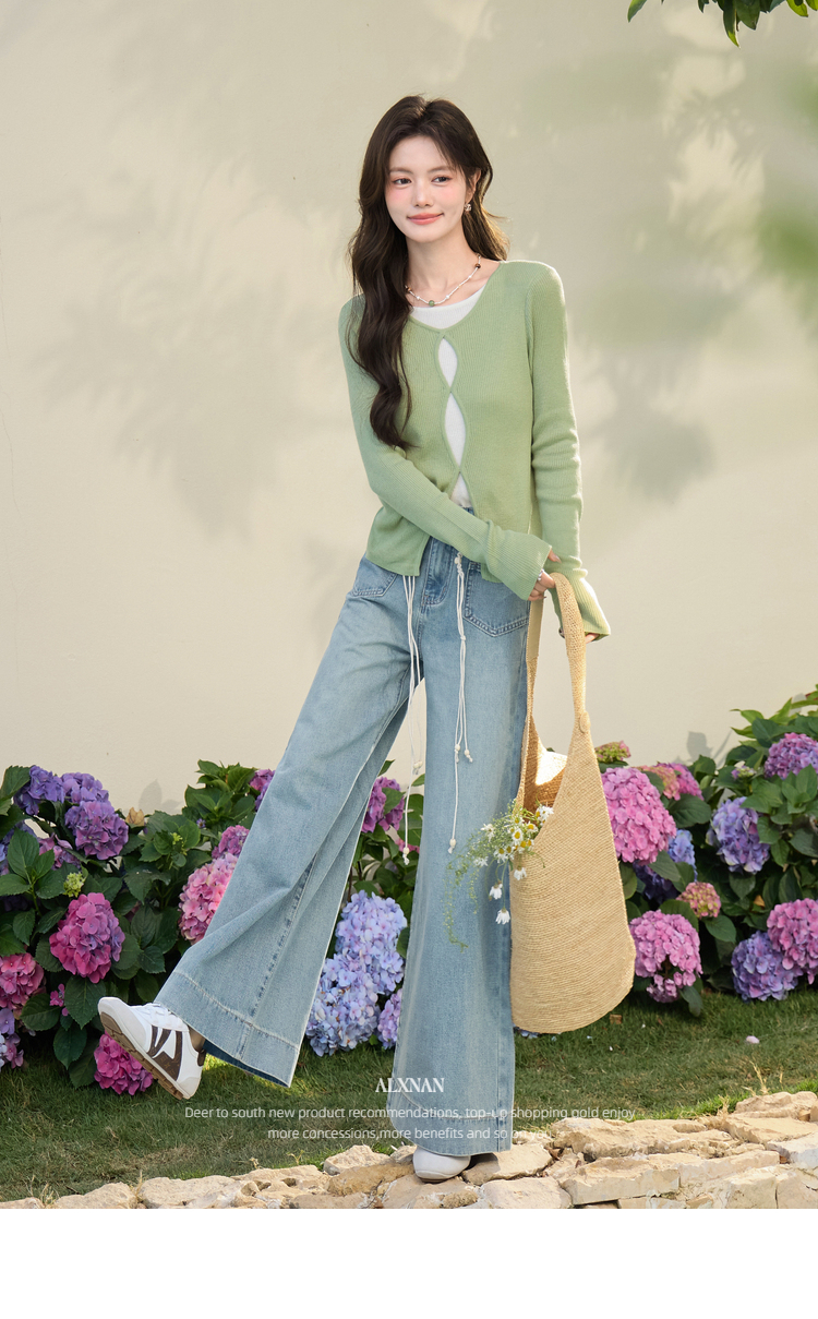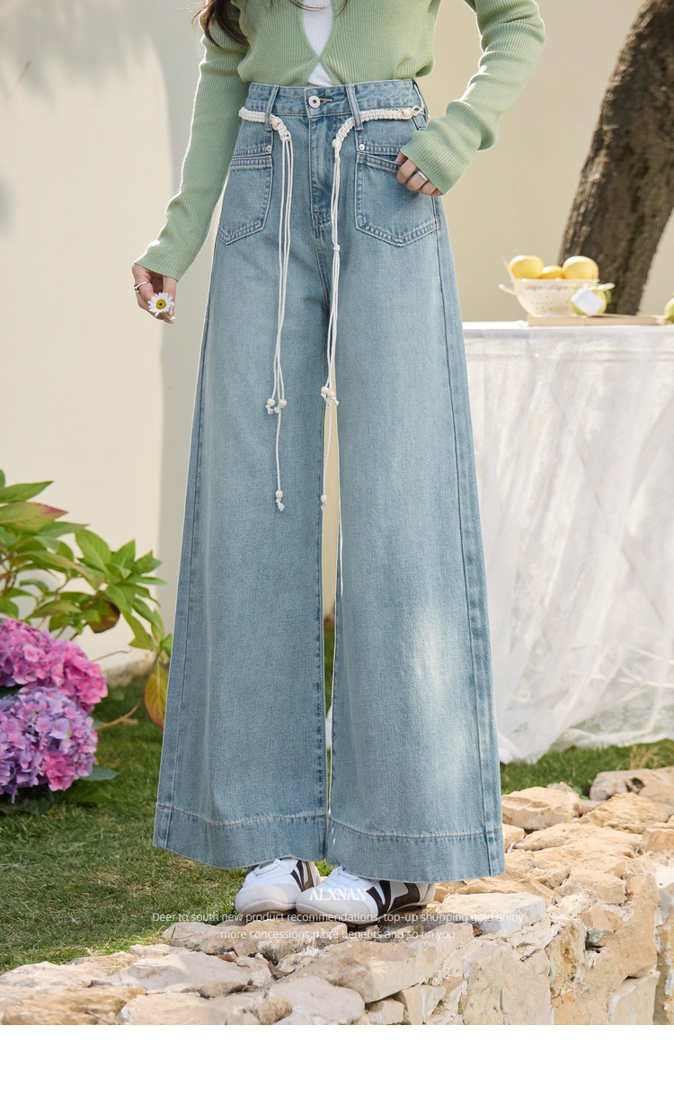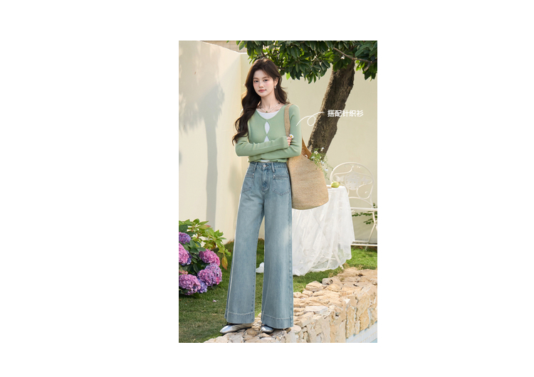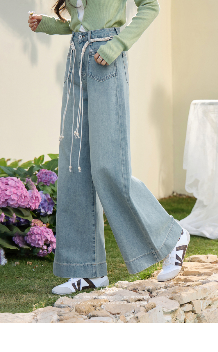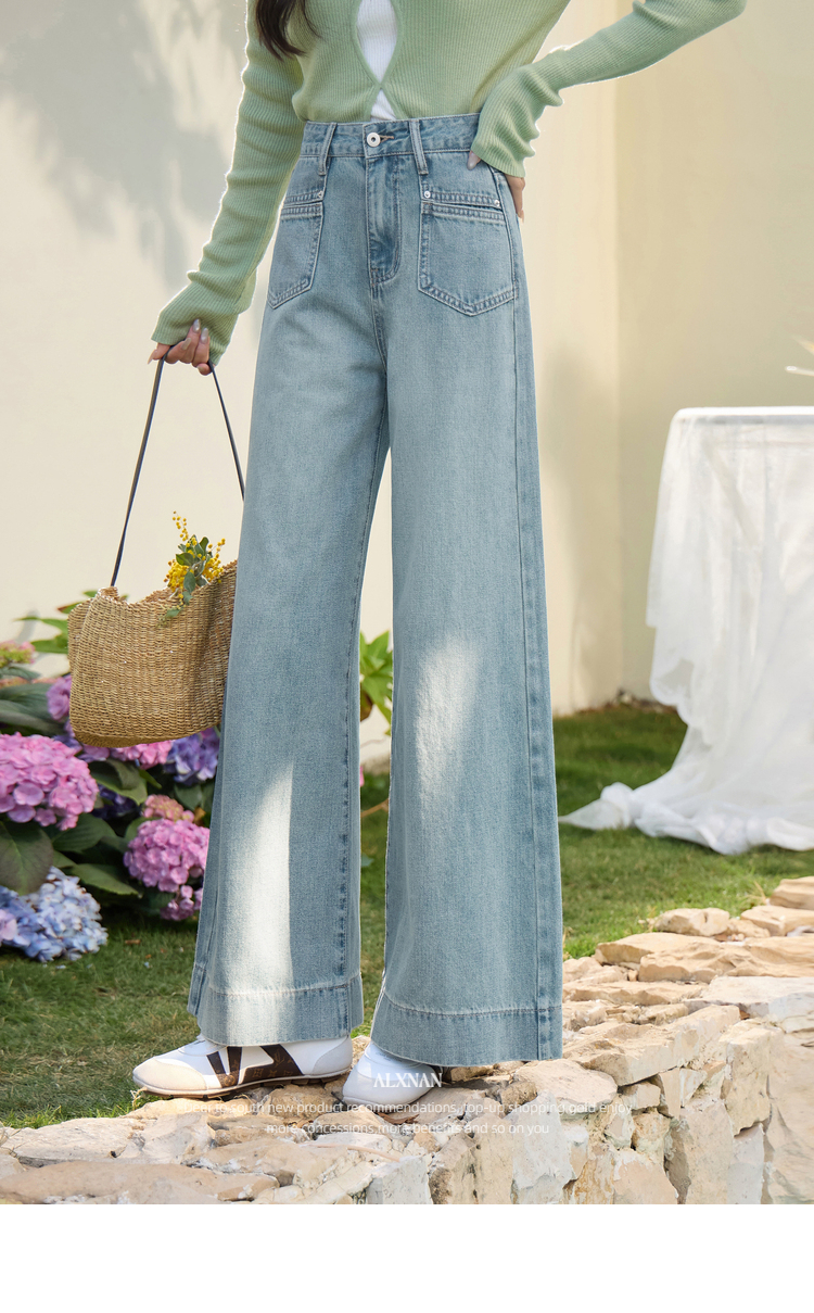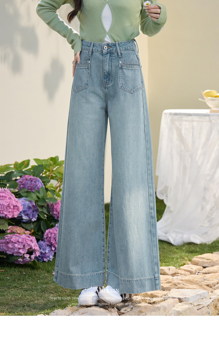 鹿向南「晴岸织蓝」蓝色直筒牛仔裤春新款时尚百搭高腰修身长裤女