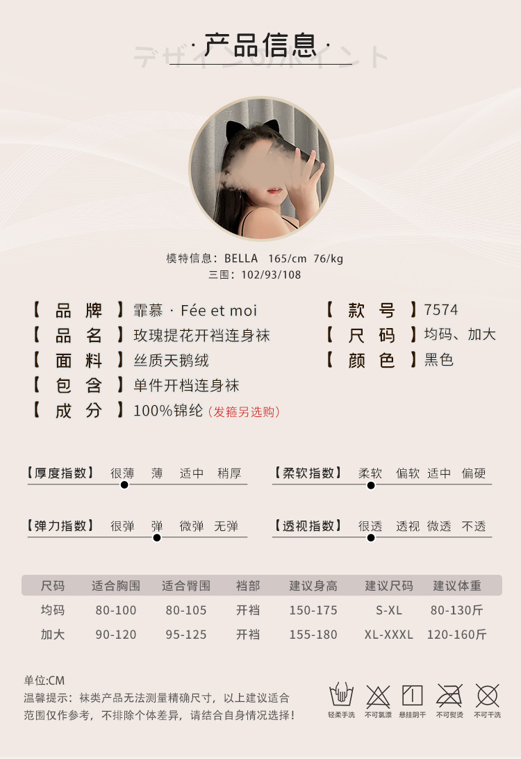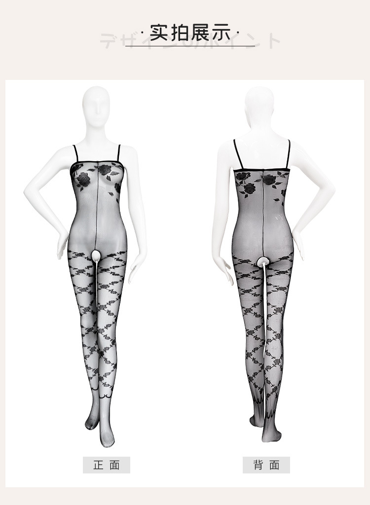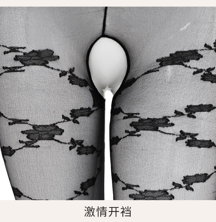 【情趣内衣】霏慕玫瑰提花开裆丝袜连身袜7574