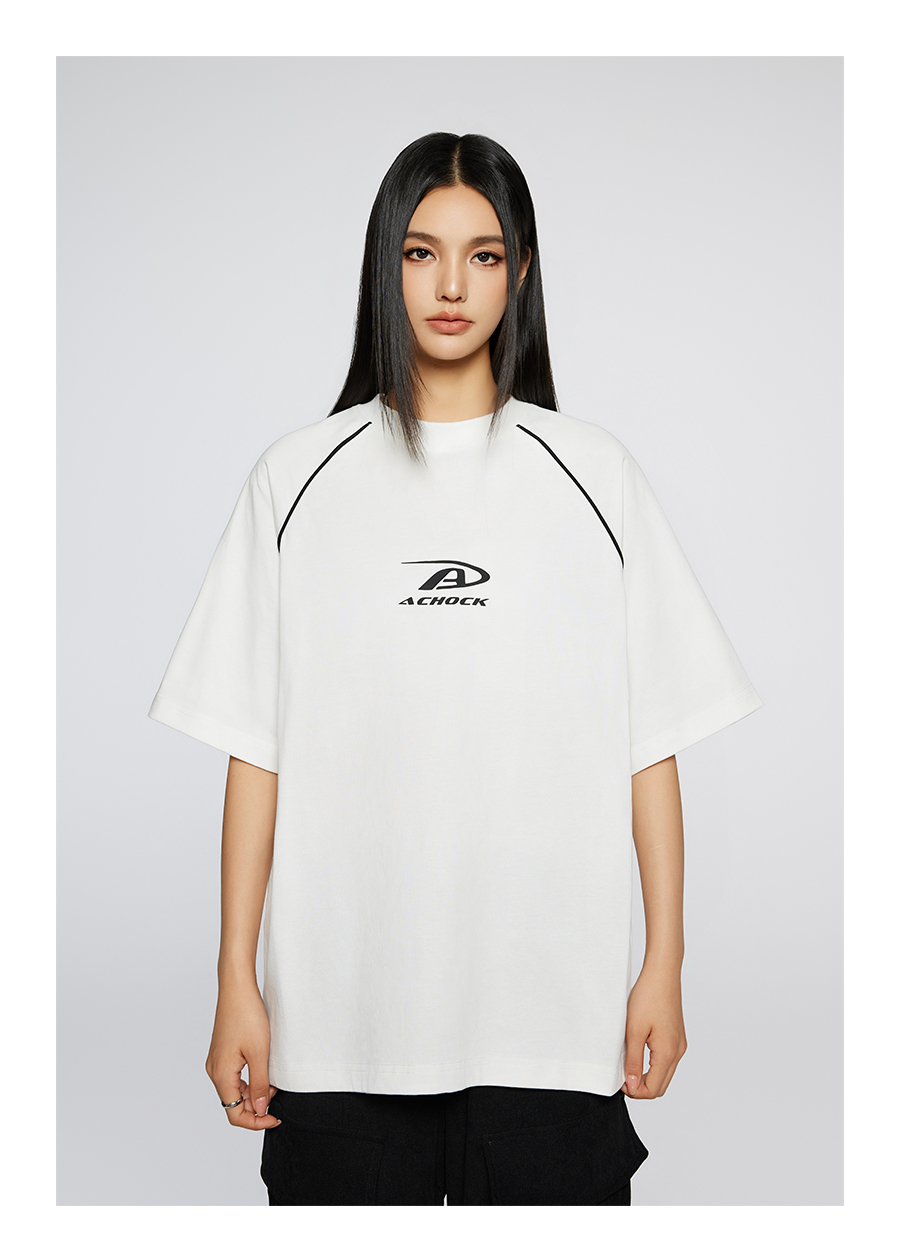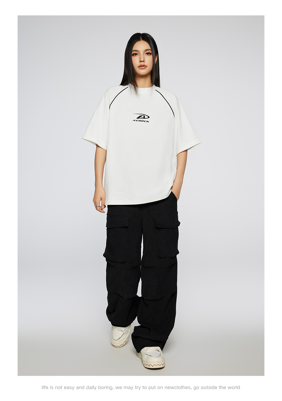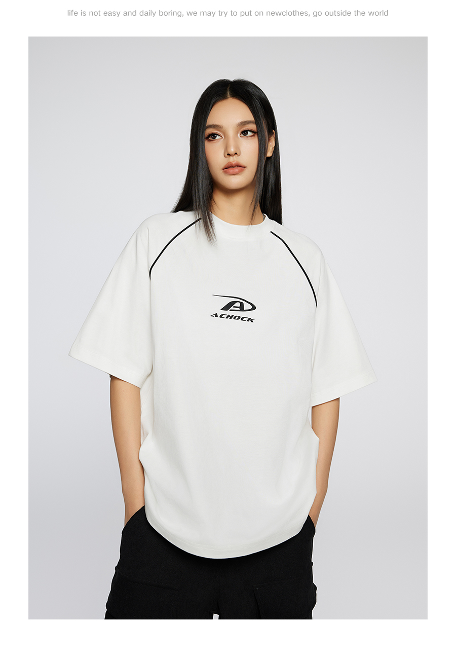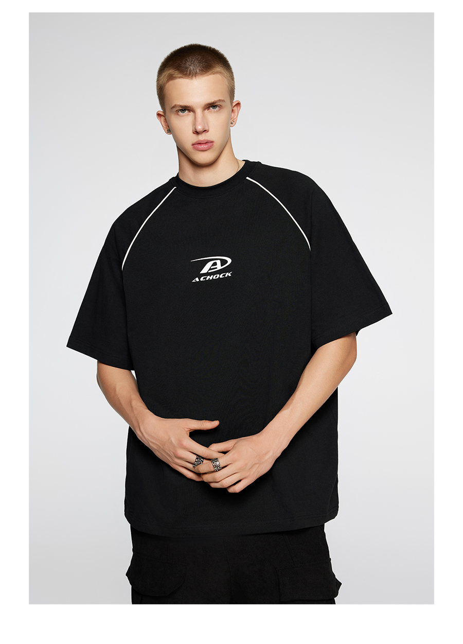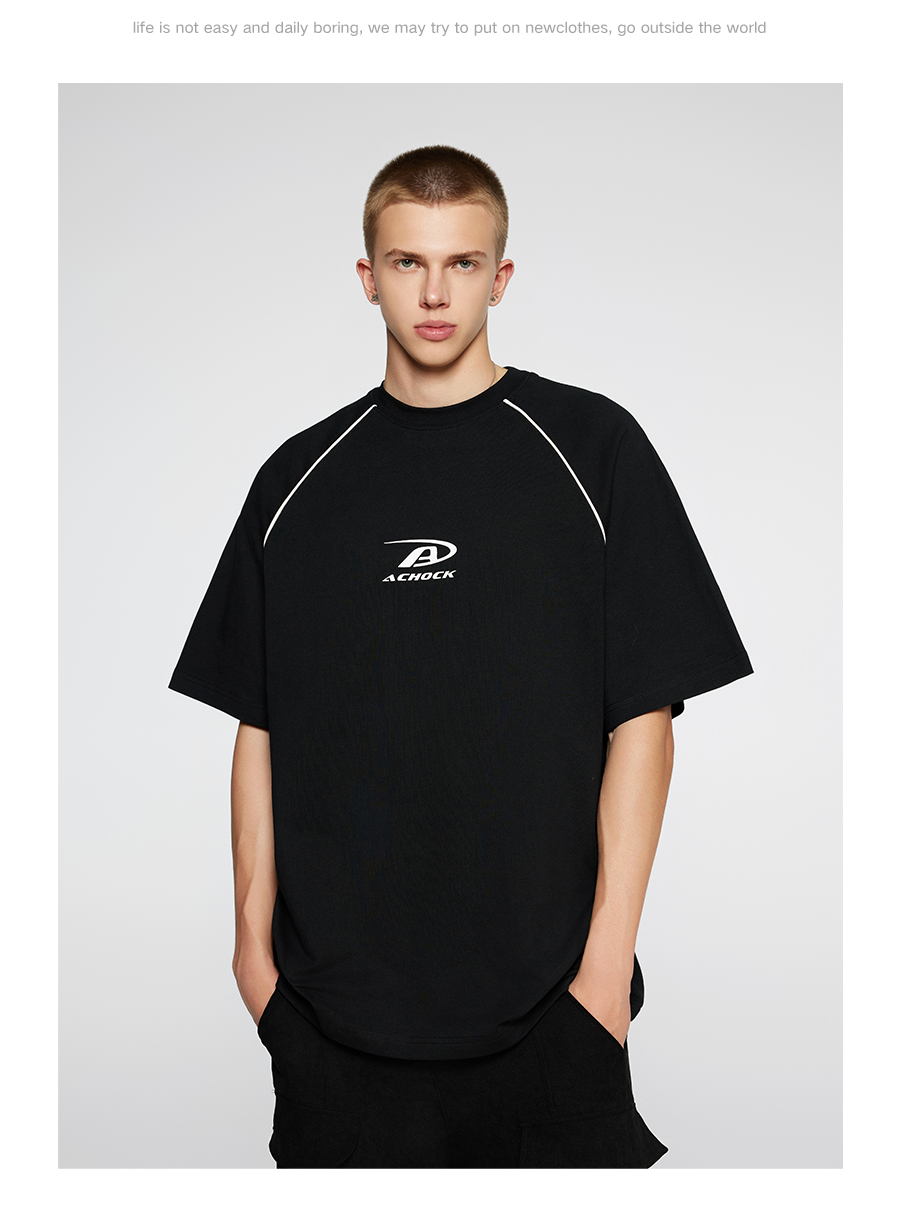 【Achock官方店】美式拼条设计感宽松圆领T恤潮牌高街纯色短袖男
