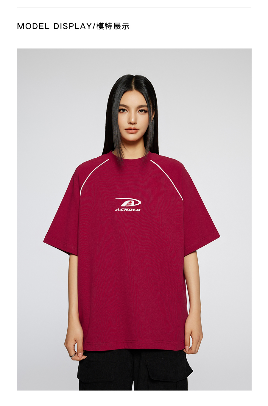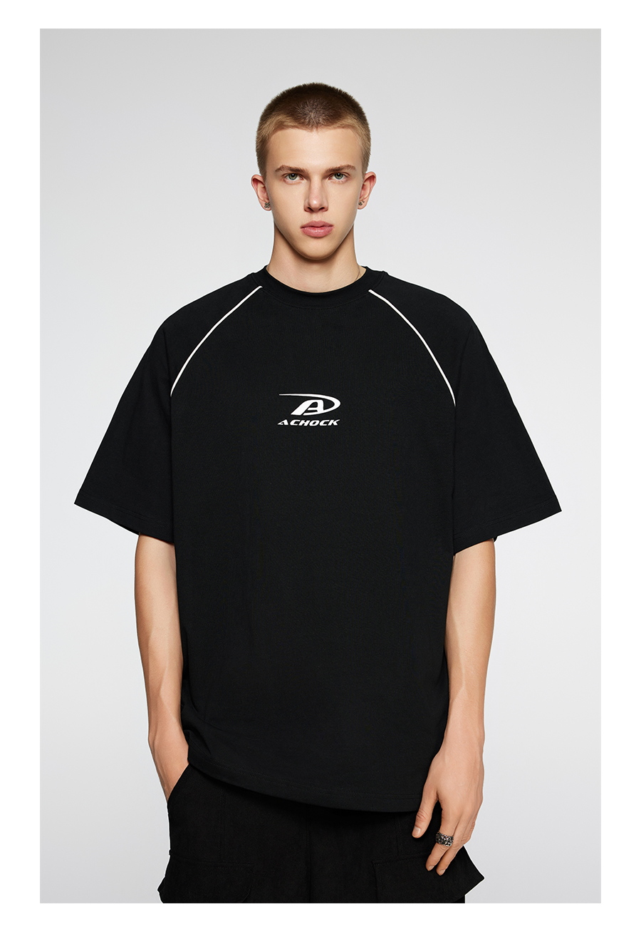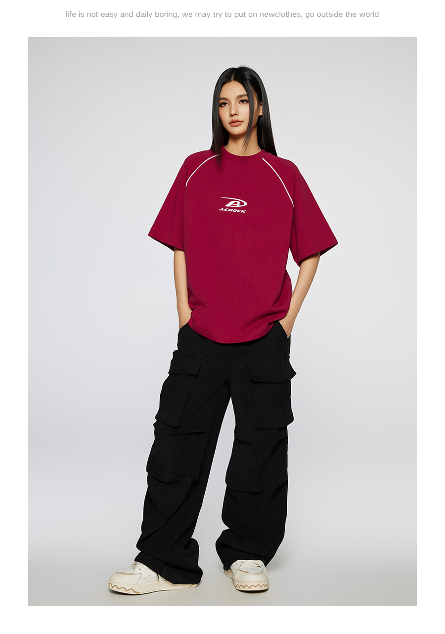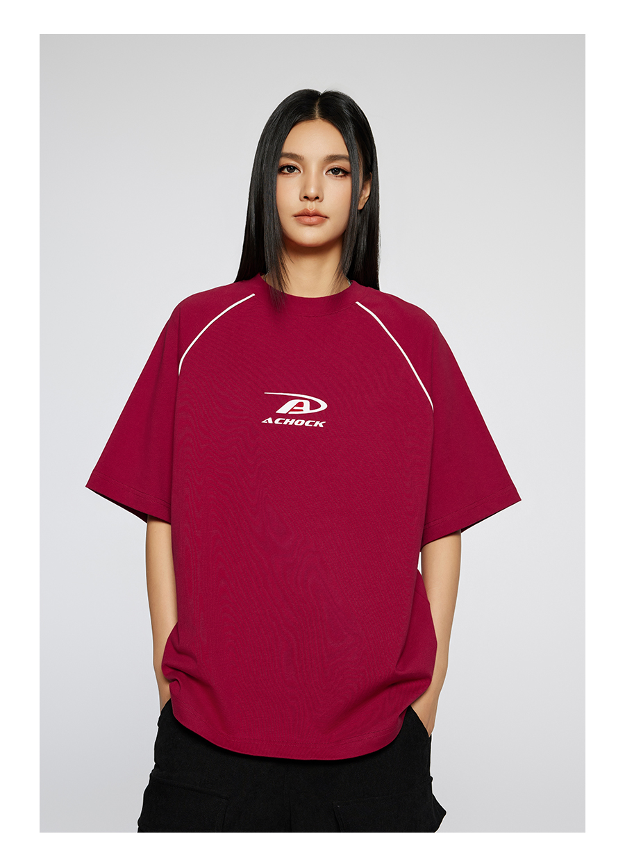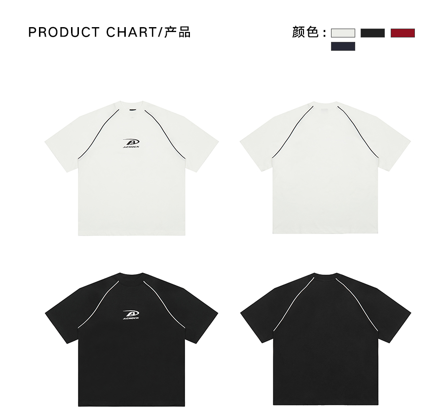 【Achock官方店】美式拼条设计感宽松圆领T恤潮牌高街纯色短袖男