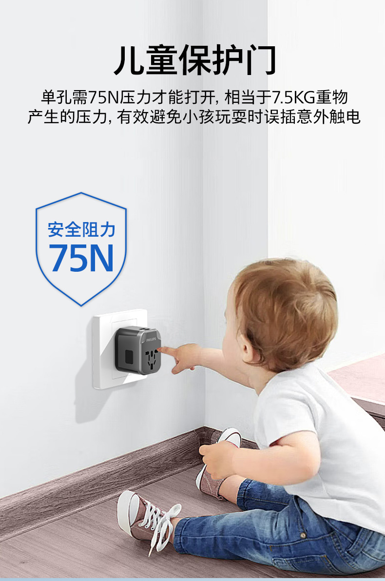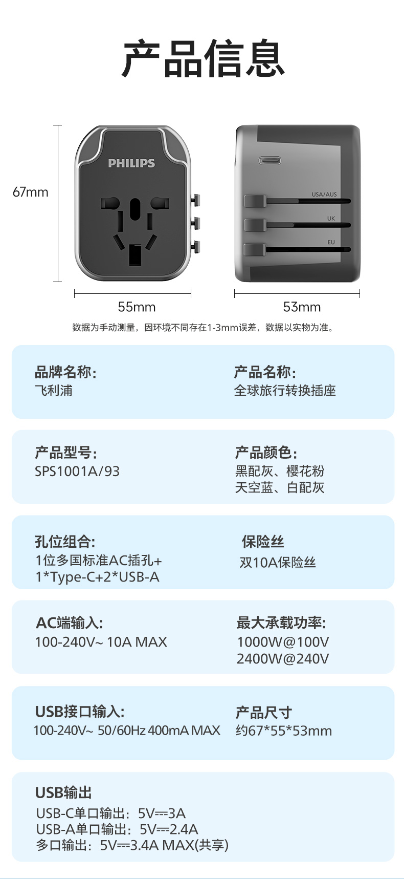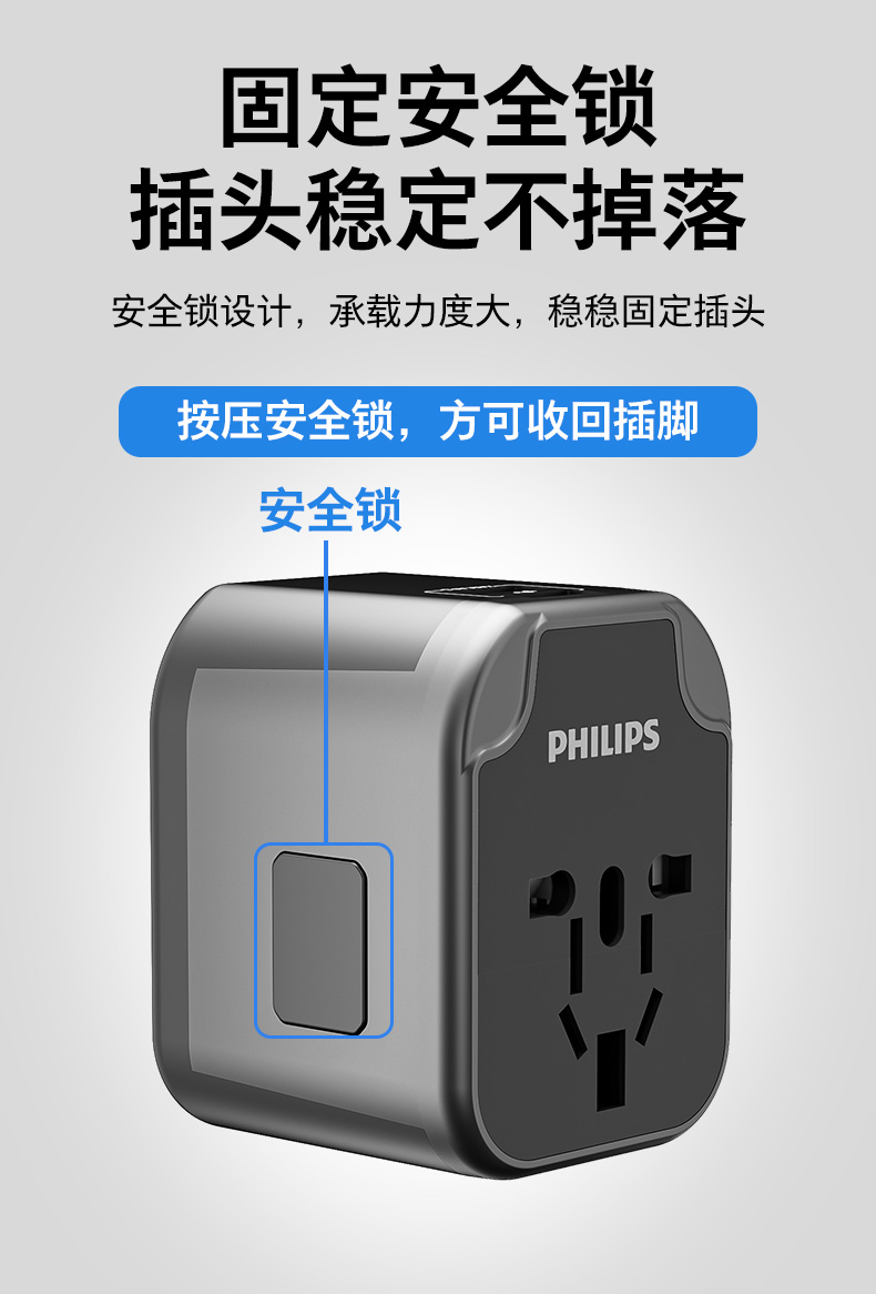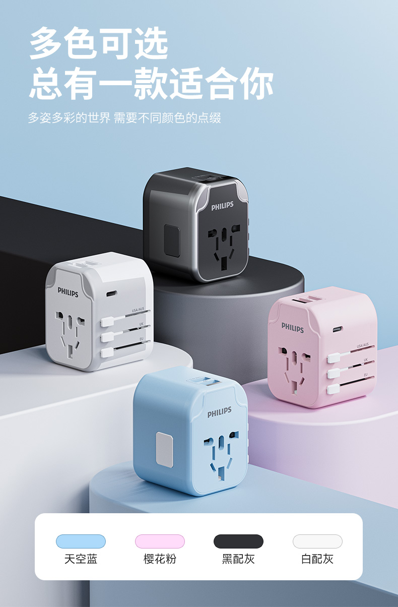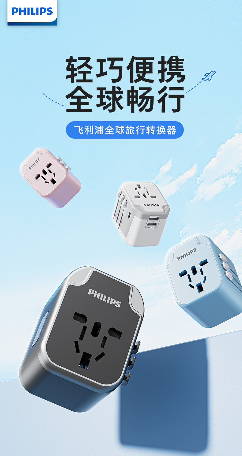飞利浦(PHILIPS) 插座欧标插座全球通用德标插排韩国排插巴厘岛泰国插头转换器转换插头全球通用转换插头 【全球通】升级15W多C口